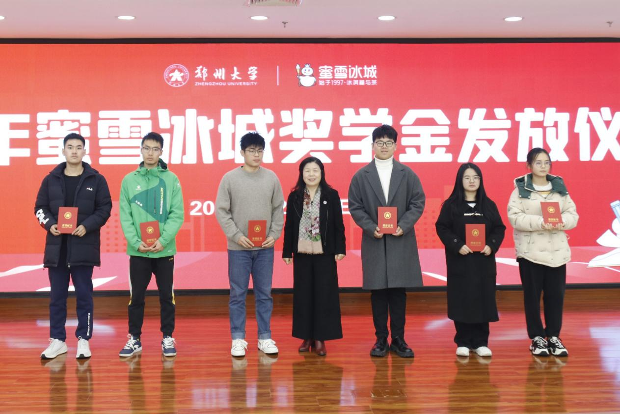 近日,2023年度“蜜雪冰城奖学金”发放仪式在主校区举行。蜜雪集团公共事务高级总监刘伟伟、必赢76net线路官网副校长张倩红出席。党委学生工作部、对外联络办公室、新闻与传播学院、生命科学学院等相关单位负责人及获奖学生代表参加活动。