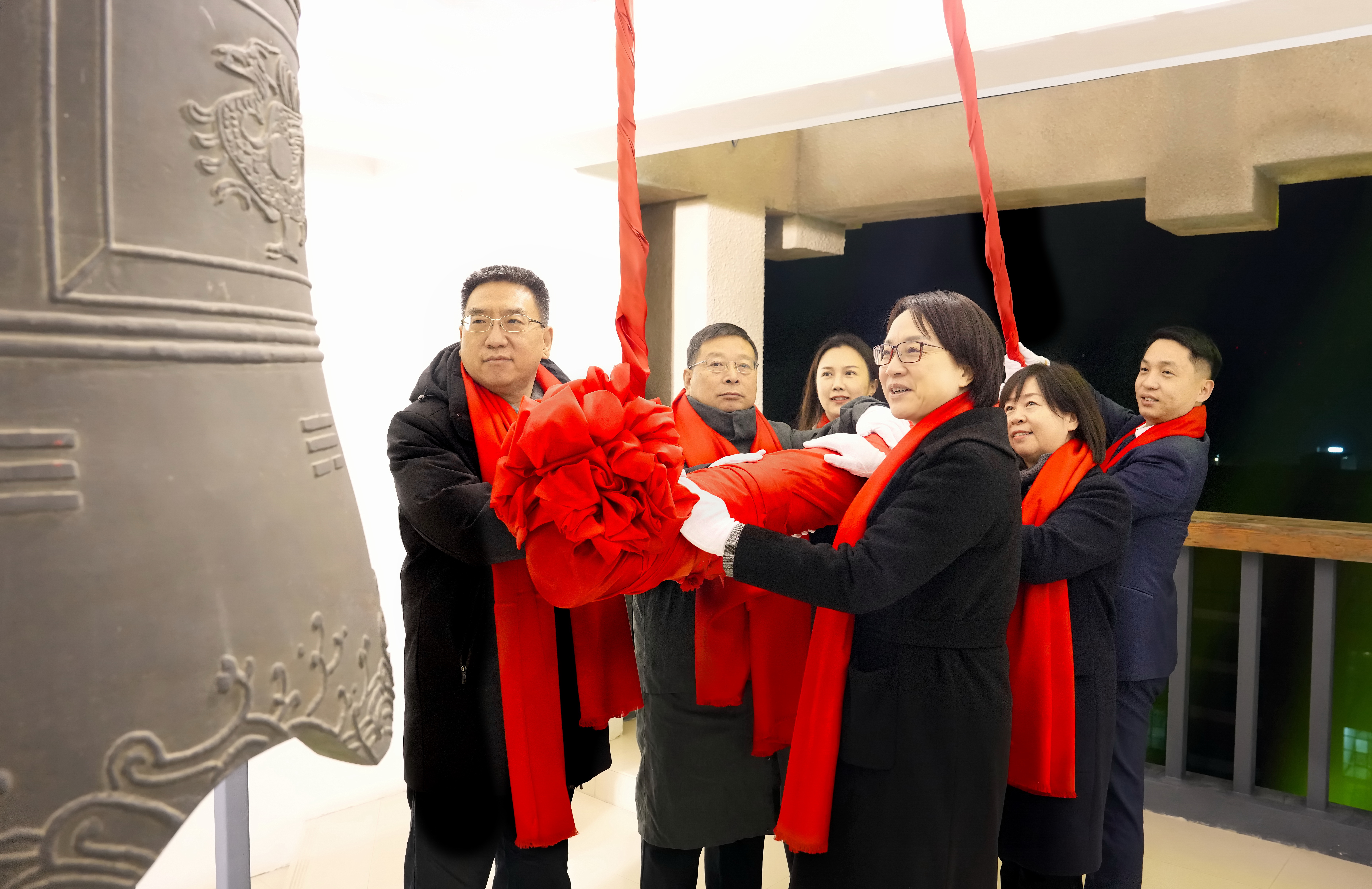 校党委书记别荣海、校长李蓬院士与师生员工代表敲响新年钟声