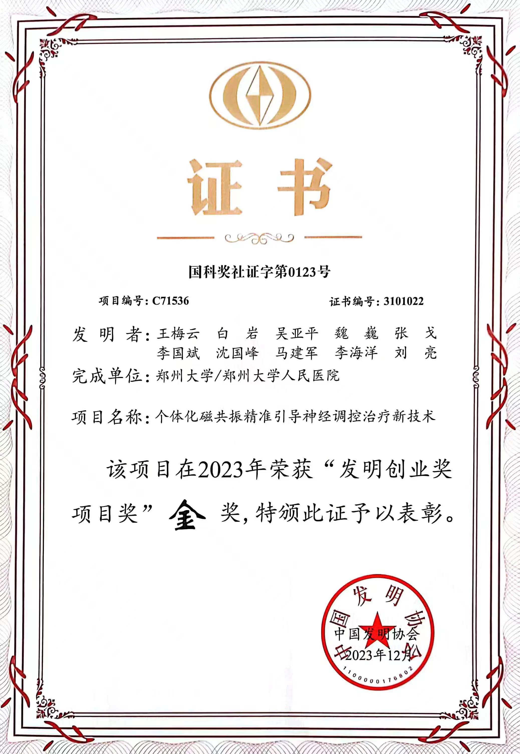 近日,2022-2023年“发明创业奖项目奖”和“一带一路”暨金砖国家技能发展与技术创新大赛颁奖典礼及优秀项目主题展览在北京隆重召开,必赢76net线路官网王梅云教授凭借个体化磁共振精准引导神经调控治疗关键核心技术上的突破,荣获2023年中国唯一一个世界知识产权组织最佳女性发明奖,同时,她带领项目团队获得中国发明协会“发明创业奖项目奖”金奖。