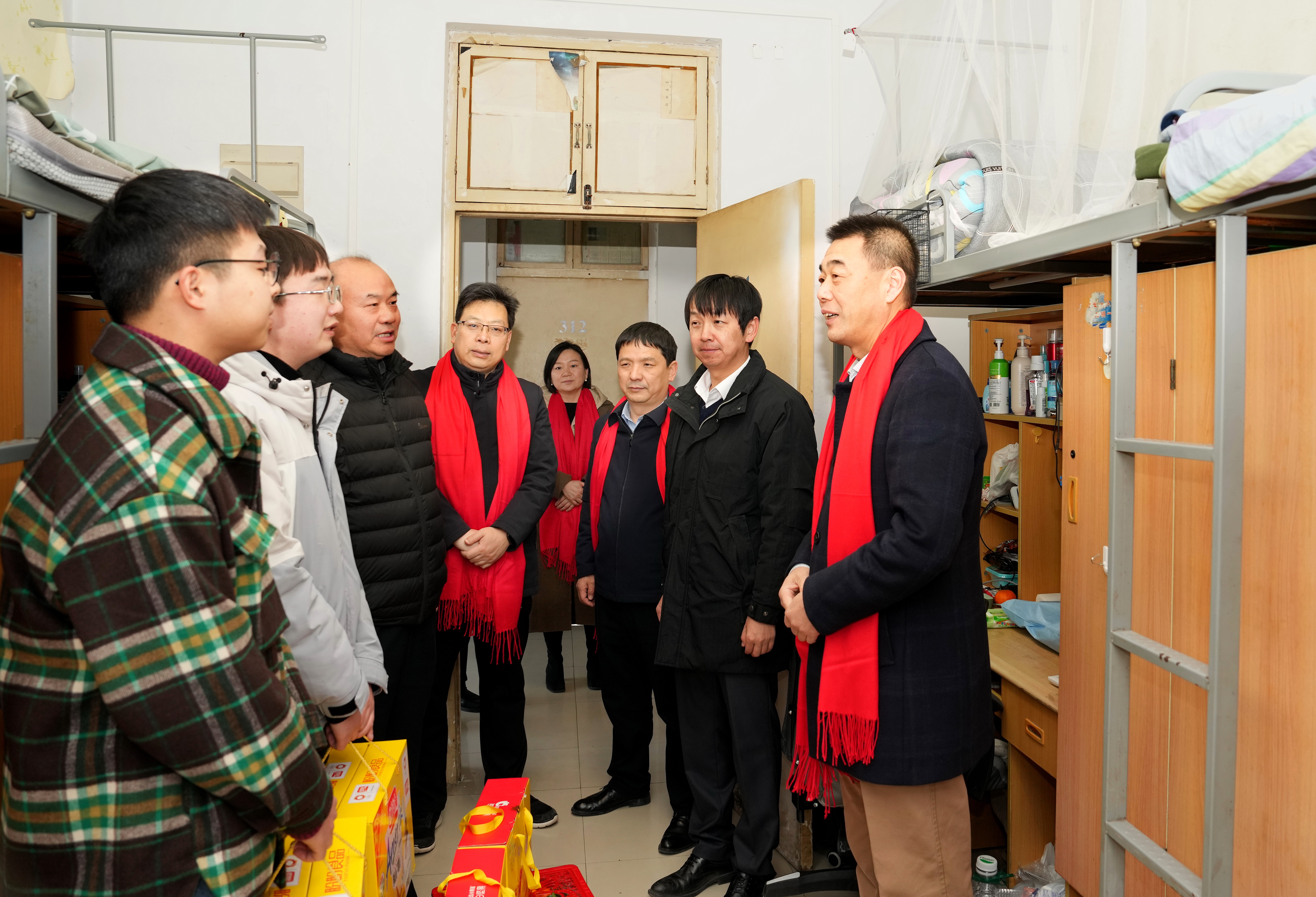 下午,吴宏阳一行深入公共卫生学院实验室、松园学生社区研究生宿舍、留学生宿舍看望寒假在校学生,详细了解同学们在寒假期间的就餐、购物、供暖、洗澡、健康等生活保障情况,并送上了学校精心准备的新年大礼包。