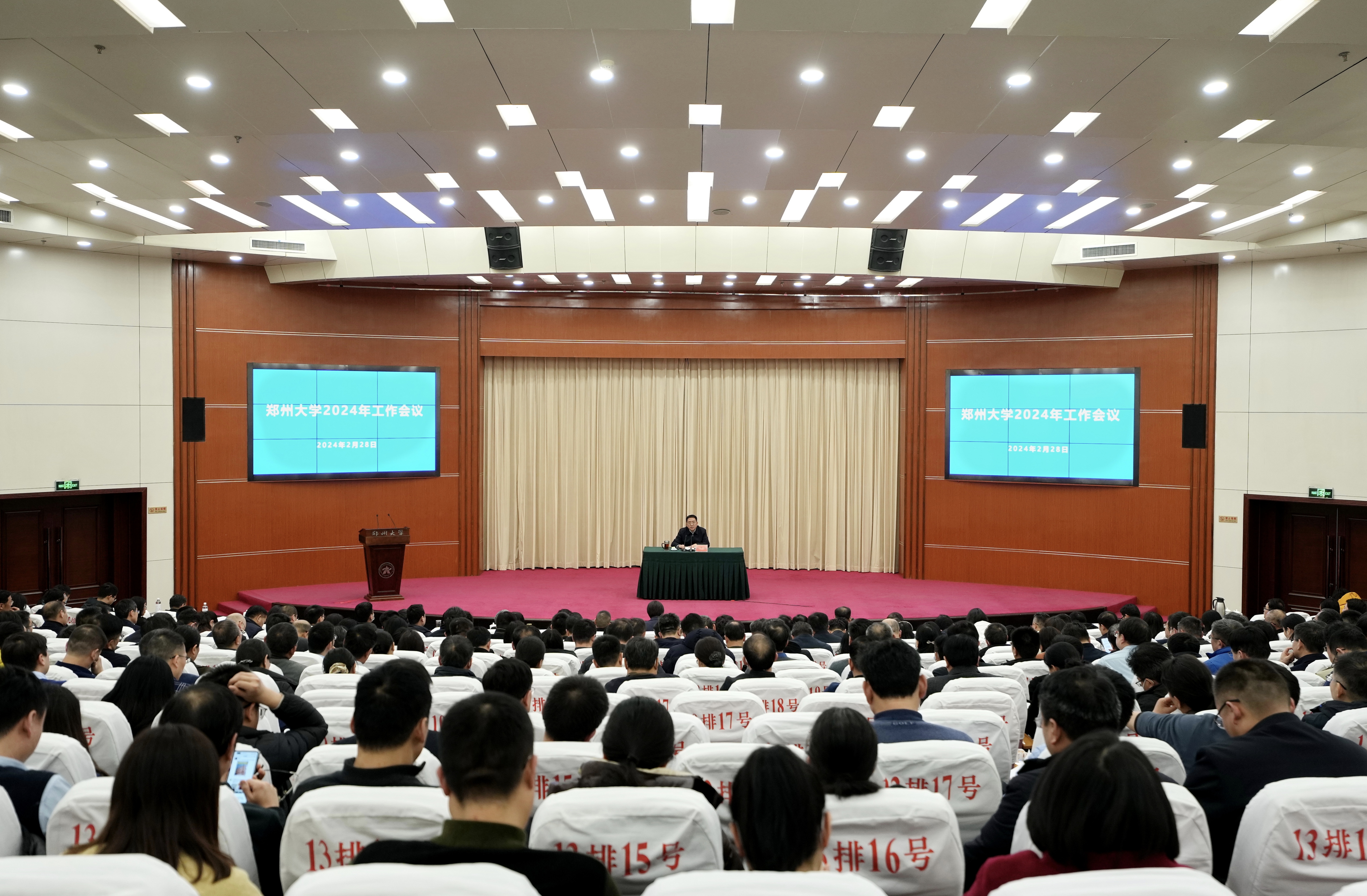 校党委书记别荣海讲话,指出2024年是学校实现“十四五”规划目标任务的关键一年,也是一流大学建设的攻坚克难之年,要重点做好五方面工作。一是系统谋划抓党建。坚持把抓好党建作为最大的政绩,以政治建设为统领,用习近平新时代中国特色社会主义思想铸魂育人,按照“五个过硬”要求加强领导班子和干部队伍建设,以“标杆院系”“样板支部”培育创建为抓手夯实基层基础,为一流大学建设提供坚强保证。二是问题导向抓改革。扎实推进“大部制”改革,优化运行机制,提升服务效能;有序推动“院办校”改革,将“大学办大学”转变为“学院办大学”;落实医学教育体制机制改革,做实临床医学院,改革医学人才培养模式;全面推进人事制度和绩效分配改革,把以学科建设为突破口的“指挥棒”真正立起来,激发工作活力。三是突出重点抓内涵。要用好“四个清单”,强化目标牵引,打造学科高峰;要建强创新平台体系,优化科研制度体系,推动有组织科研,产出高水平成果,提升科研实力;要在“引、育、用、留”上下功夫,完善管理举措和考评机制,构建高质量的人才发展服务保障体系;要以本科教学审核评估为契机,创新人才模式,优化教学条件保障,打造“金专、金课、金师、金教材”,全面提升教育教学质量水平。四是把握全局抓统筹。要持续优化办学空间,扎实推进医学院新院区建设;要强化资源配置,建立目标导向的预算管理机制、院系自主规划的预算统筹机制,探索建立公共用房有偿使用机制,建立健全大型仪器设备共享机制;要守牢安全底线,坚决维护好国家安全、意识形态安全、校园安全,保障学生身心健康。五是驰而不息抓全面从严治党。要按照中央和省委部署,扎实开展集中性纪律教育,落实中央八项规定精神,坚决纠治“四风”,深化“清廉郑大”创建,营造风清气正、干事创业的良好环境氛围,奋力开创一流大学建设新局面!
