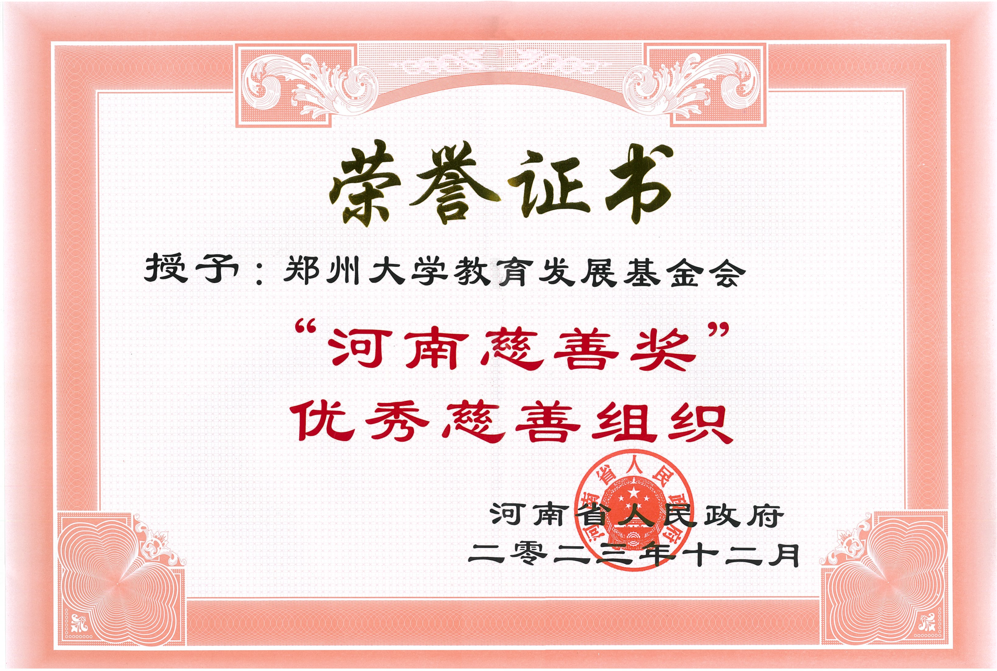 必赢76net线路官网教育发展基金会荣获“河南慈善奖”“优秀慈善组织”荣誉证书