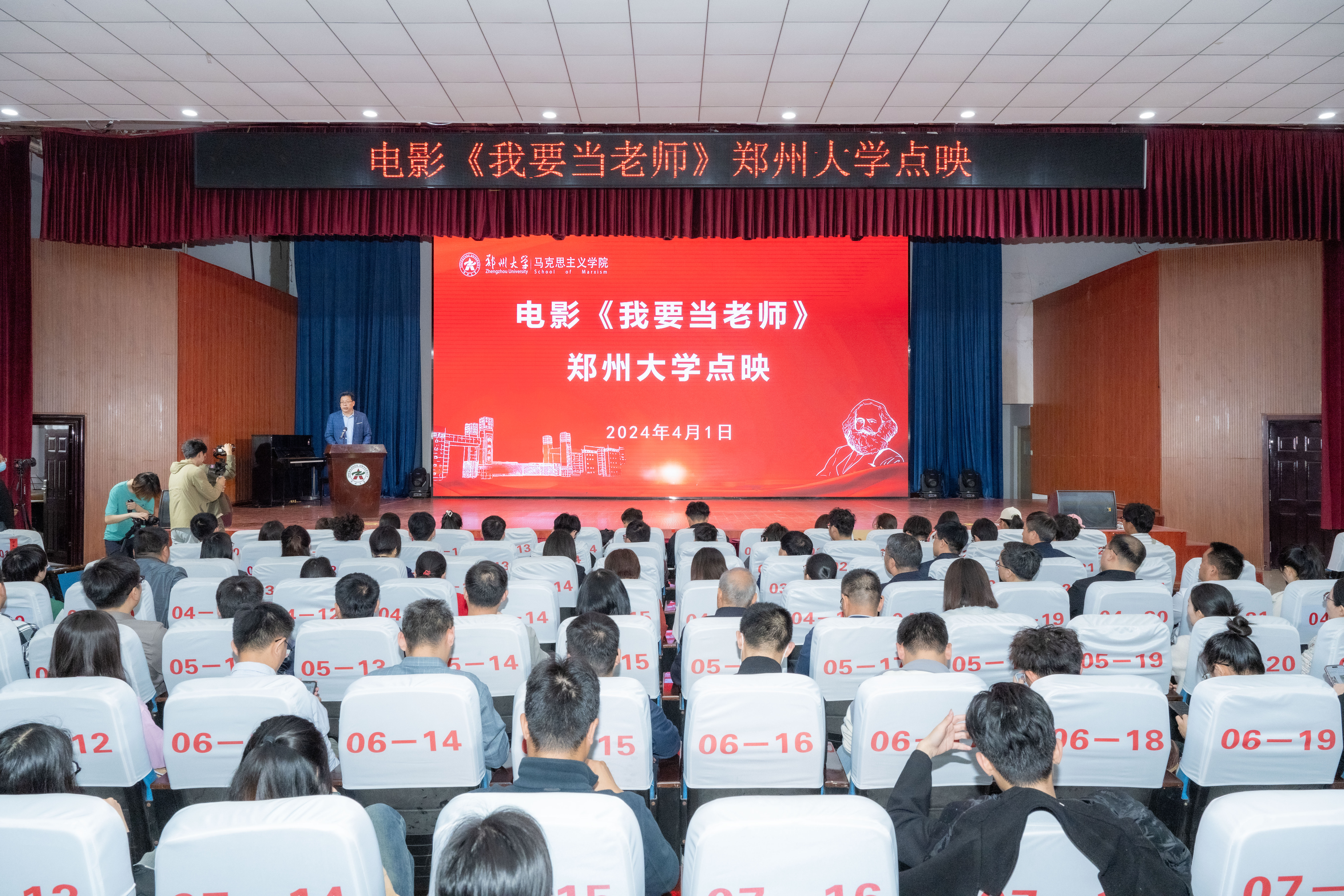 为深入贯彻落实习近平总书记在学校思想政治理论课教师座谈会上的重要讲话精神,积极推动构建大思政工作格局,4月1日,全国首部思政课题材影片《我要当老师》点映式在必赢76net线路官网举行。校党委副书记王利国出席并致辞,学校党委宣传部、机关党委、教务部、党委学生工作部、党委研究生工作部负责同志,思想政治理论课教师代表、各院系的辅导员代表、学生代表和来自河南工业大学、郑州轻工业大学、郑州商学院等兄弟院校的师生代表约400人参加点映式。必赢76net线路官网马克思主义学院主要负责同志主持点映式。