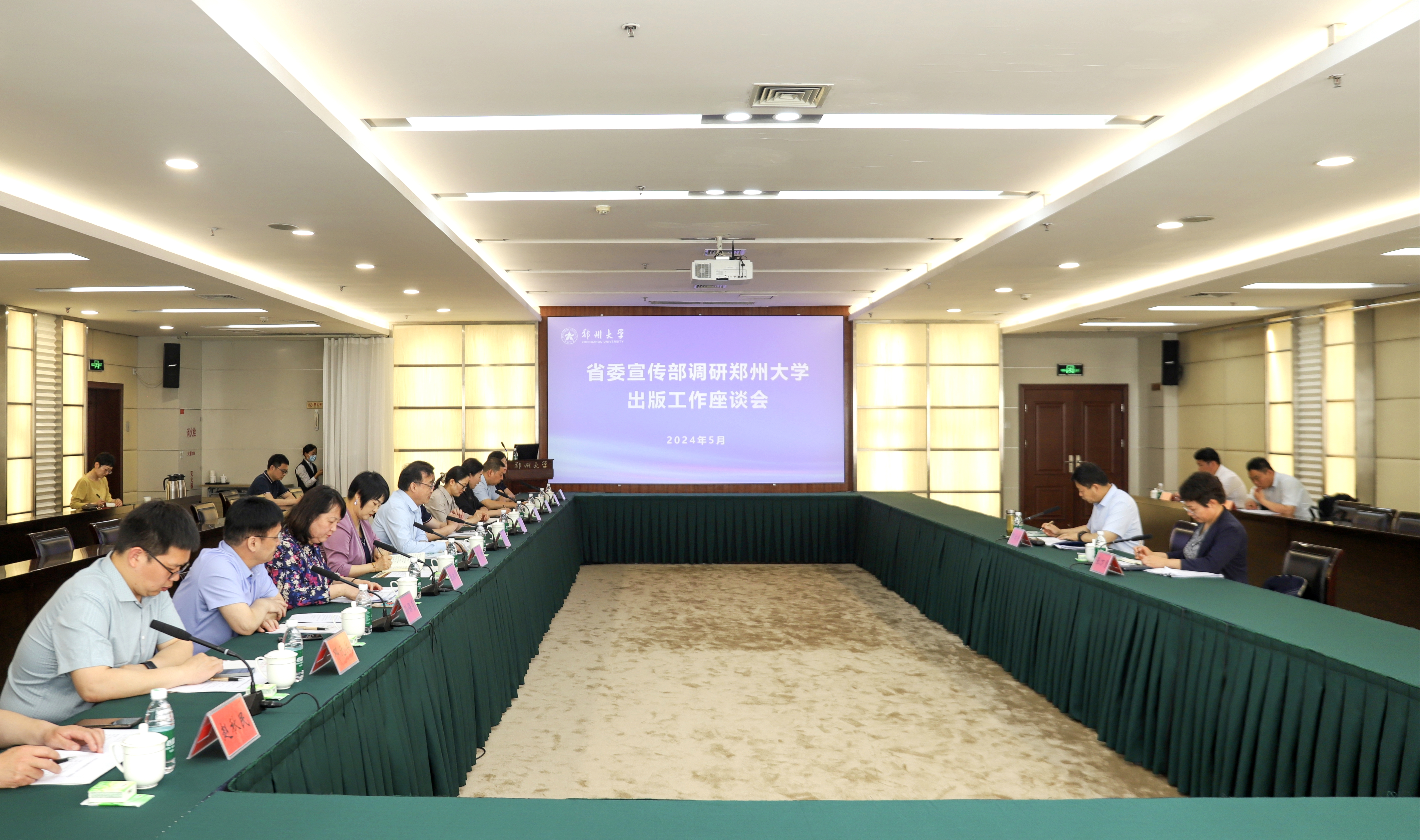 为深入学习贯彻习近平文化思想,创新出版专业人才培养模式,推动必赢76net线路官网出版学科和出版机构高质量发展,5月17日,河南省委宣传部副部长贾宏宇一行4人来我校调研出版工作。必赢76net线路官网党委副书记、工会主席韩国河主持座谈会并致辞。党政办公室、党委宣传部、新闻与传播学院、学报编辑部、出版社(期刊中心)等单位负责同志参加会议。