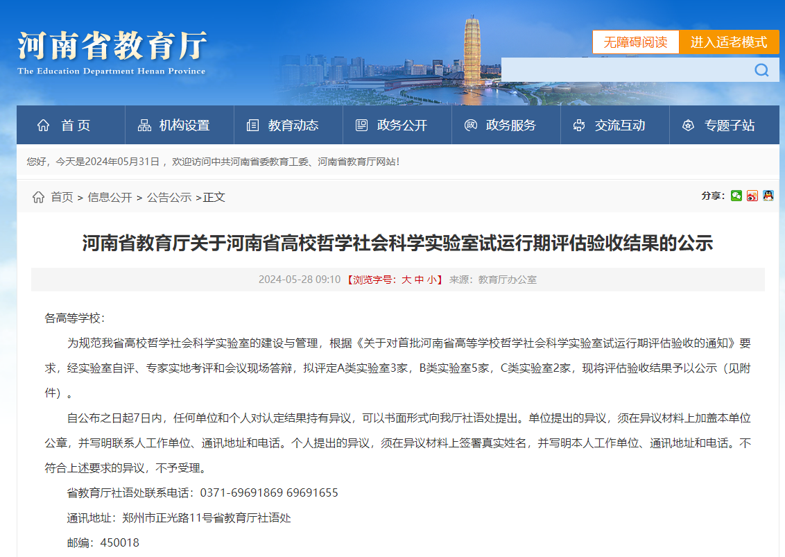 近日,河南省教育厅对首批河南省高校哲学社会科学实验室试运行期评估验收结果进行了公示,经实验室自评、专家实地考评和会议现场答辩,评定A类实验室3家。其中,必赢76net线路官网“中华源”考古实验室获评,并位列全省首位,其彰显了近年来我校在考古学科建设方面取得的可喜成绩。
