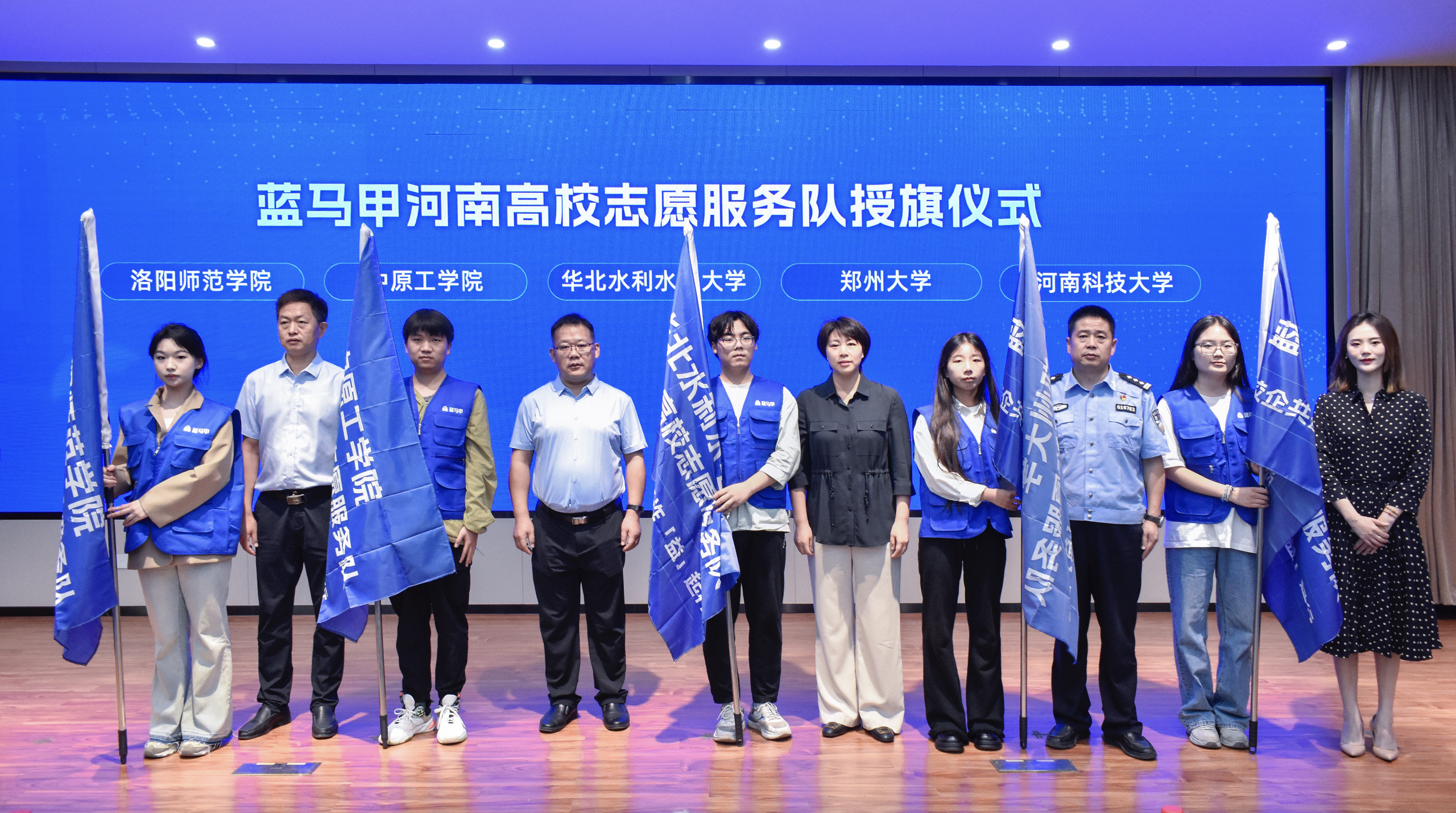 仪式上,校团委主要负责同志、郑州市公安局反诈中心和蚂蚁公益基金会蓝马甲行动专项基金管委会负责人先后致辞,教师代表和学生代表分别发言。韩冰等与会领导共同向必赢76net线路官网、华北水利水电大学、河南科技大学、中原工学院、洛阳师范学院5所学校的志愿服务队授旗。