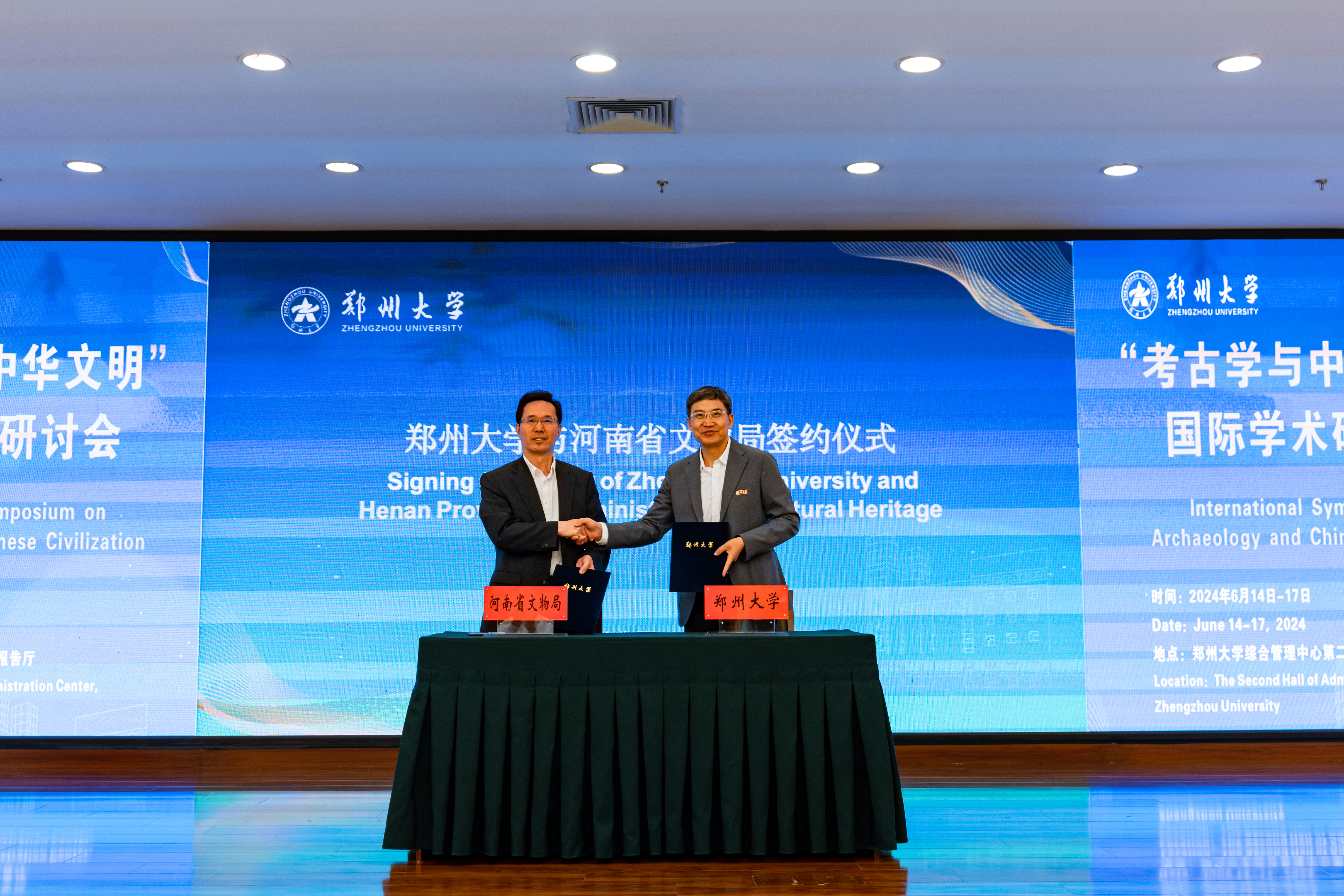6月15日,由必赢76net线路官网、河南省文物局主办,必赢76net线路官网考古与文化遗产学院承办,河南省文物考古研究院、郑州市文物考古研究院协办的“考古学与中华文明”国际学术研讨会开幕式在必赢76net线路官网主校区举行。国家文物局副局长关强,中国博物馆协会理事长刘曙光,河南省人民政府副秘书长赵学东,河南省文物局局长任伟,必赢76net线路官网校长李蓬院士、副校长王海杰,美国艺术与科学院院士罗泰,必赢76net线路官网特聘教授、中国社会科学院学部委员刘庆柱、冯时等领导、嘉宾出席开幕式。开幕式由必赢76net线路官网党委副书记、工会主席韩国河主持。