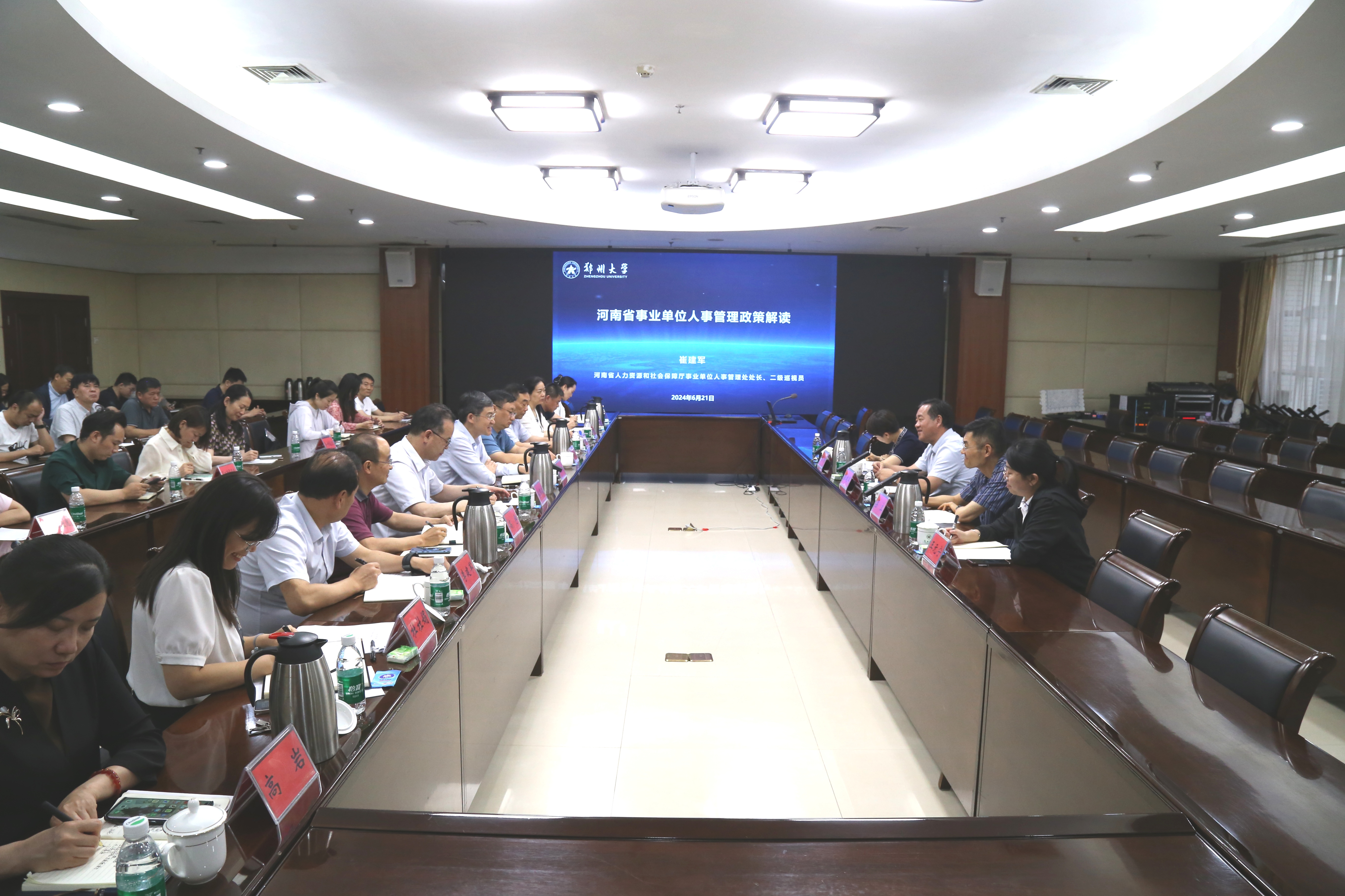 为进一步提升学校人事管理工作水平和服务质量,人事部持续开展综合素质能力提升系列培训,近日,省人社厅二级巡视员、事业单位人事管理处处长崔建军一行受邀来校作人事政策解读宣讲。副校长王海杰出席并主持会议,河南医学院,医学科学院、天健先进生物实验室(必赢76net线路官网),学校第一、二、三、五附属医院人事部门等部门相关负责同志,以及人事部(党委教师工作部、党委人才办公室)全体人员参加。