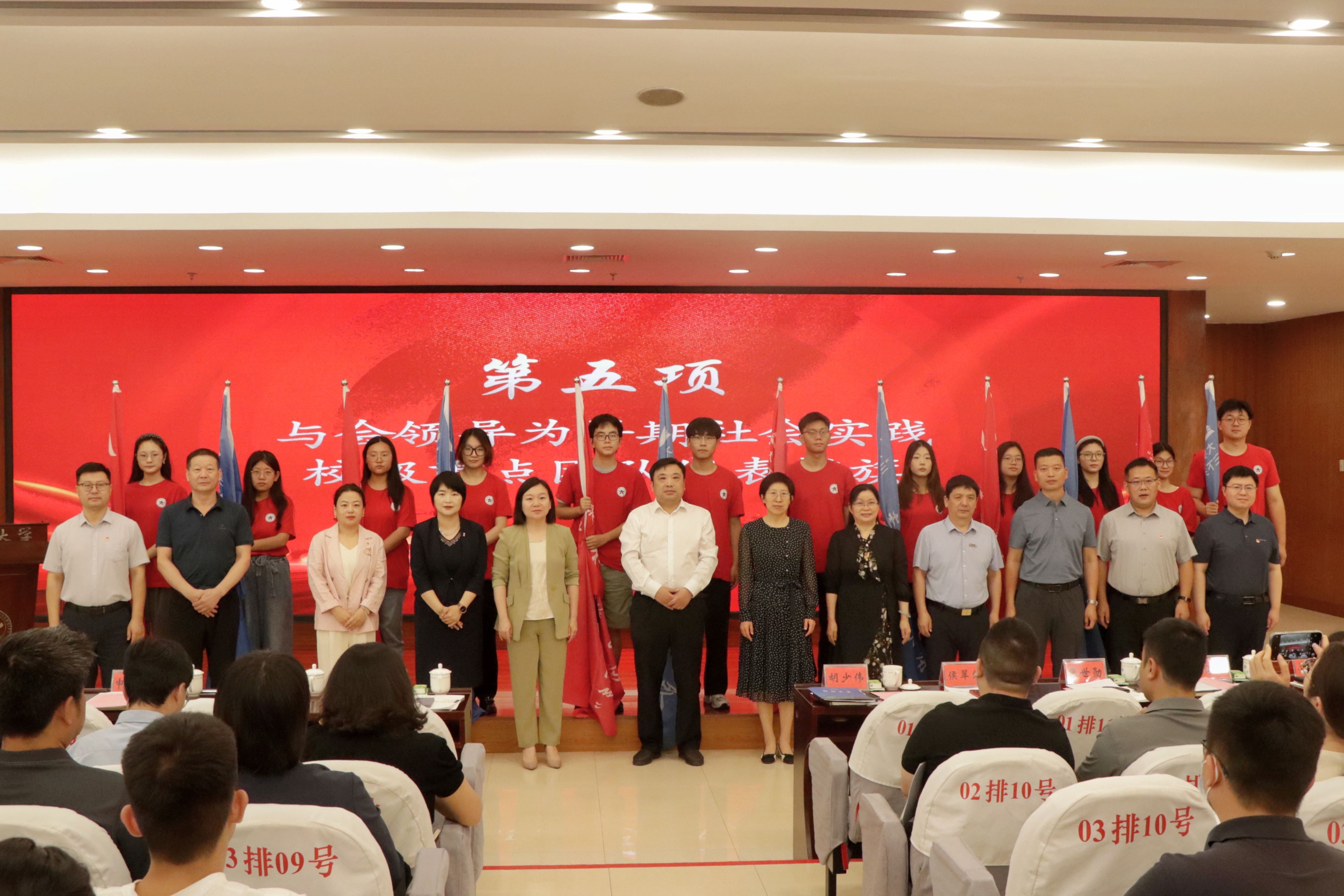 与会领导为暑期社会实践团队代表授旗