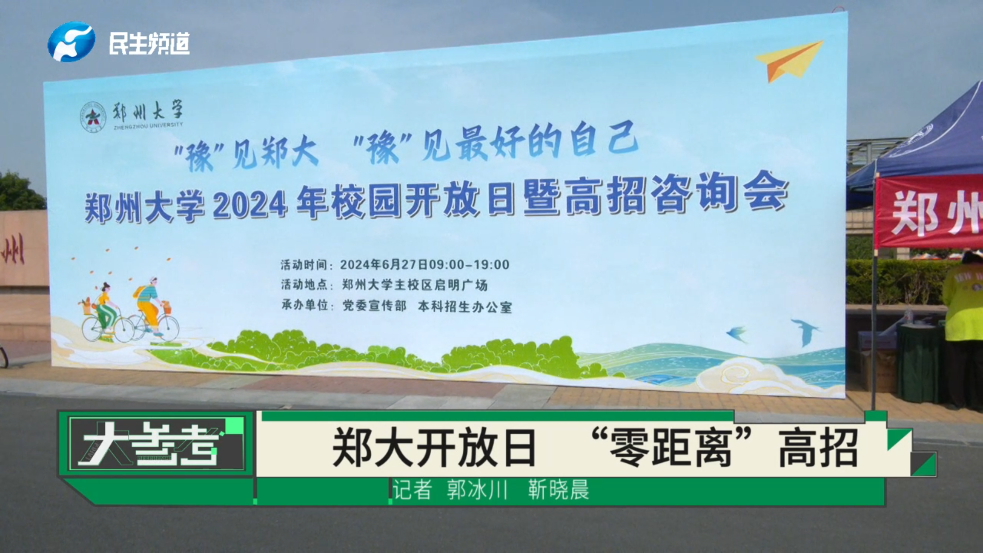 河南广播电视台《民生大参考》栏目,对郑大开放日活动进行“零距离”报道,不少考生、家长纷纷表达了对郑大的喜爱:“期待与郑大在9月重逢!”“学校师资雄厚,办学水平一流,希望孩子能梦想成真”。节目播出后网络浏览量近万人次,引发广泛关注。
