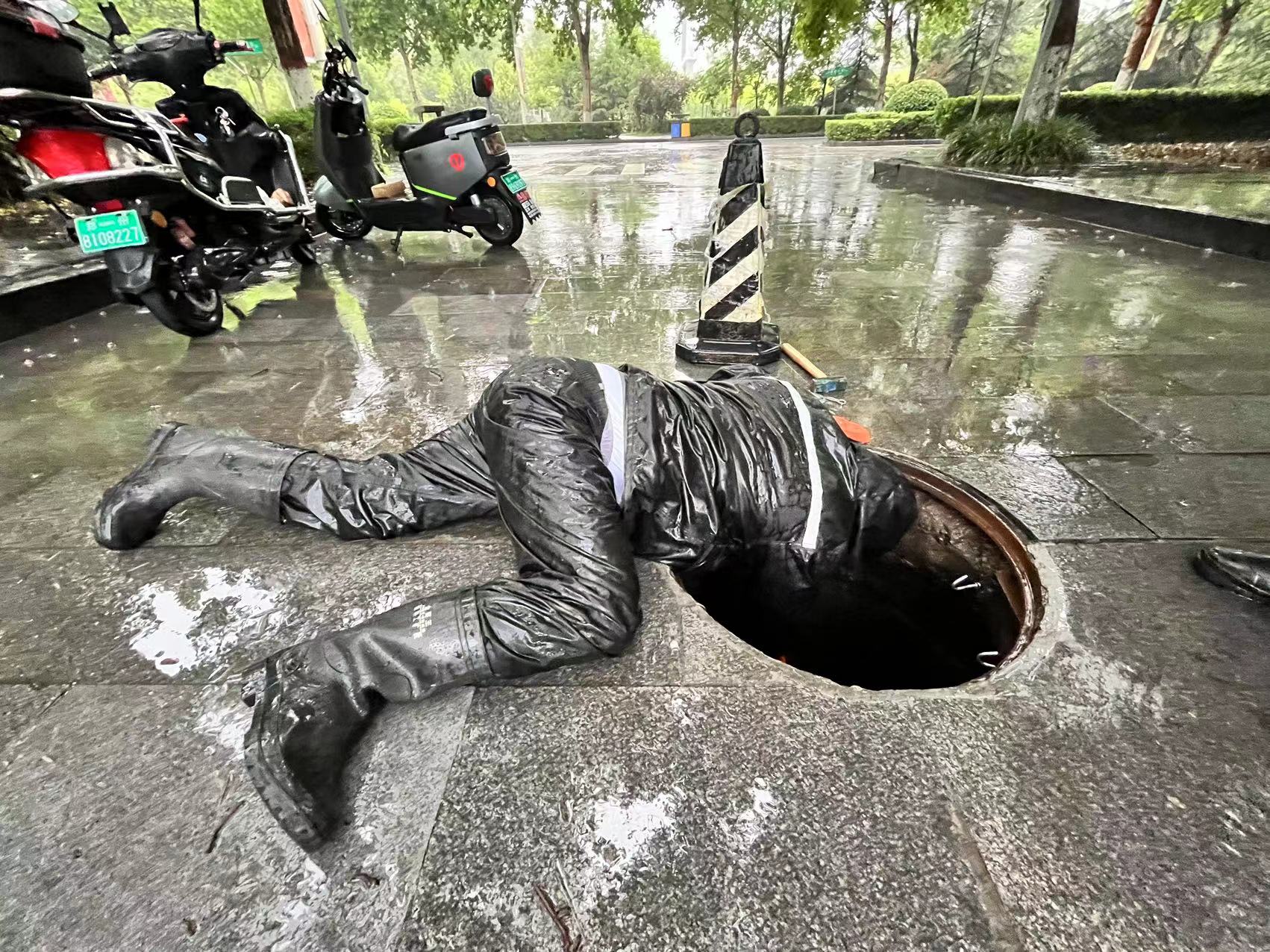 工作人员维修排水管道