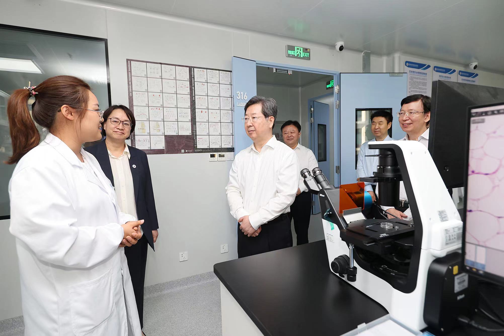 楼阳生在天健先进生物医学实验室调研