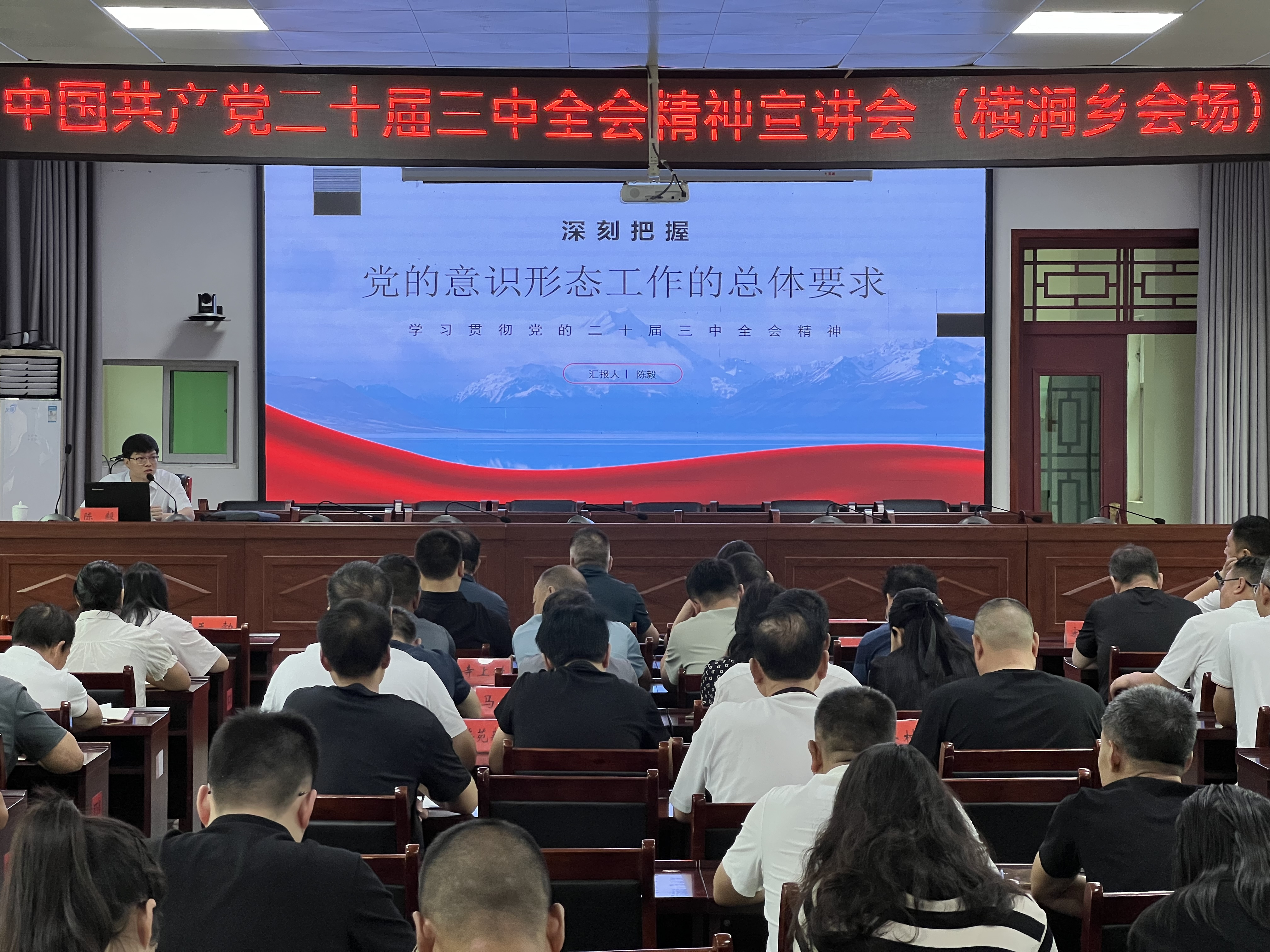 载文明而驰远,笃实践而立心。作为校地结对帮扶对象,必赢76net线路官网充分发挥一流大学学科优势,在卢氏县积极开展送政策理论进基层文明实践活动。马克思主义学院马克思主义基本原理党支部书记陈毅博士以《深刻把握党的意识形态工作的总体要求——学习贯彻党的二十届三中全会精神》为题在横涧乡开展理论宣讲。
