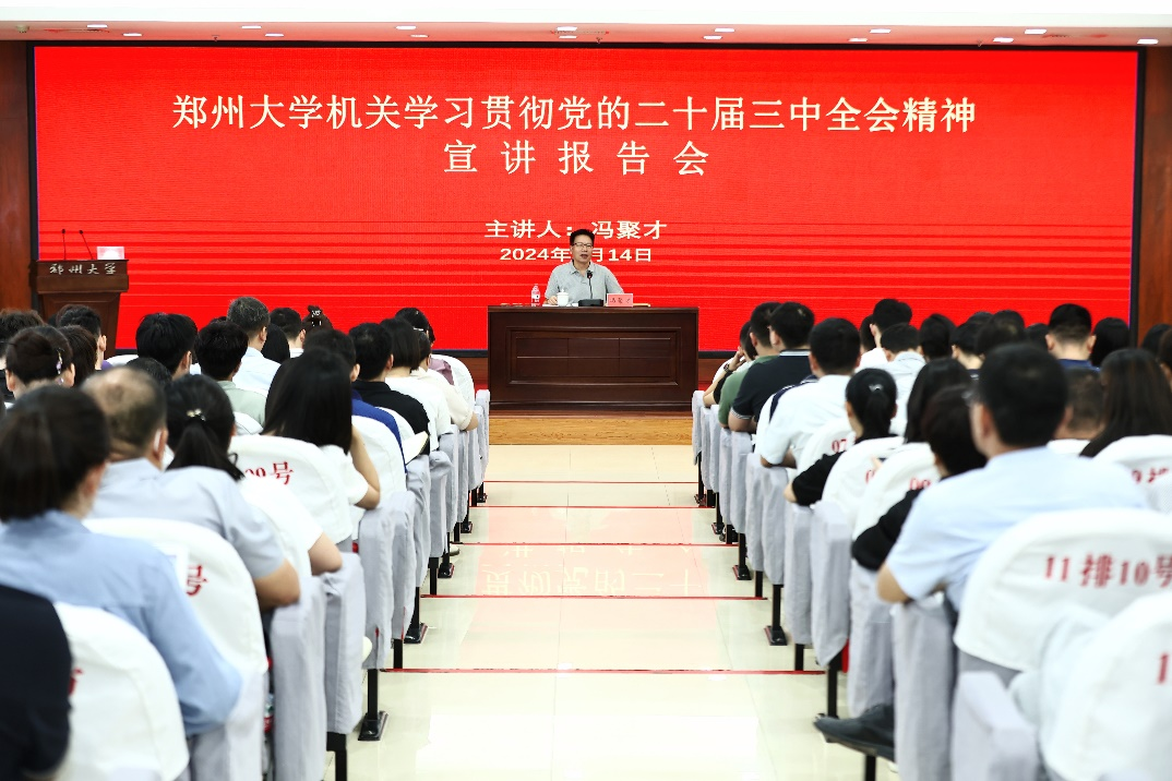 9月14日,必赢76net线路官网机关党委在主校区组织学习贯彻党的二十届三中全会精神宣讲报告会。学校宣讲团成员、马克思主义学院冯聚才教授主讲,机关党委所属各党支部委员、党员干部、入党积极分子近200人参加。机关党委负责同志主持宣讲会。