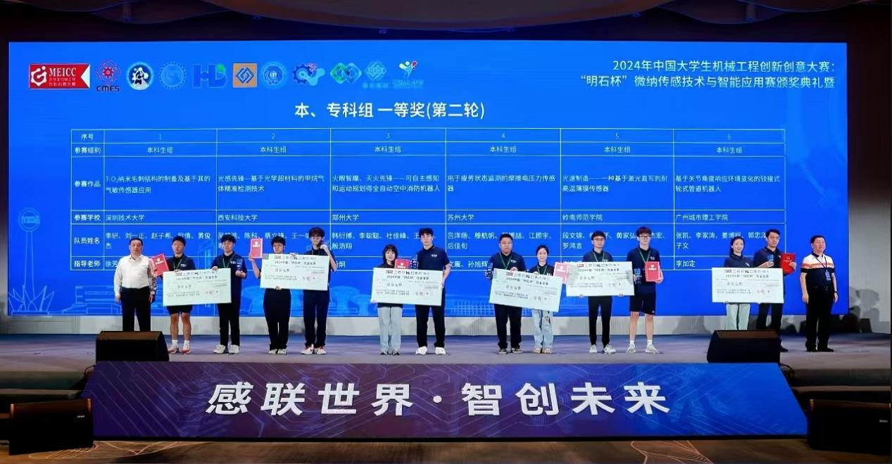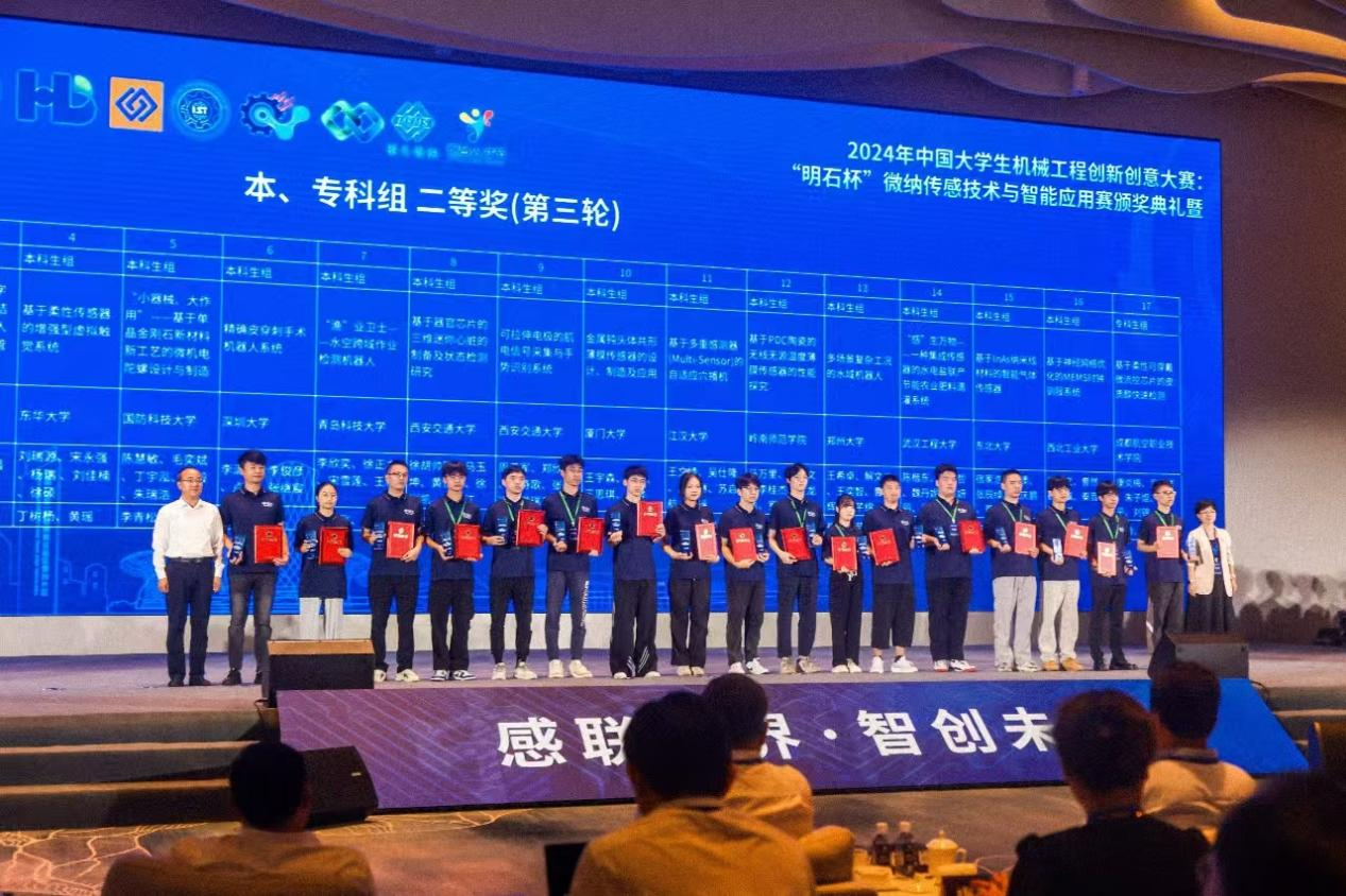 近日,2024年中国大学生机械工程创新创意大赛:“明石杯”微纳传感技术与智能应用赛总决赛在烟台成功举办。来自清华大学、浙江大学、上海交通大学、华中科技大学和国防科技大学等109所高校和研究所的309支参赛队伍入围总决赛,共有183项作品分别获得一、二、三等奖。我校在总决赛中取得一等奖1项、二等奖2项、三等奖1项的好成绩。