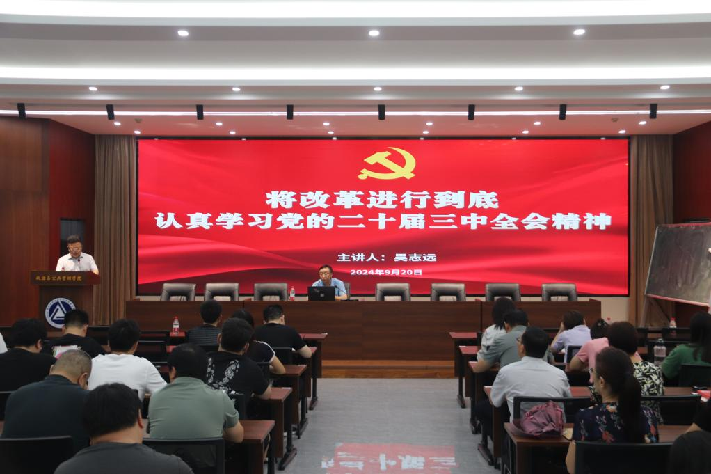 为深入学习宣传贯彻党的二十届三中全会精神,根据校党委统一部署,近日,必赢76net线路官网学习贯彻党的二十届三中全会精神宣讲团成员、河南省委宣传部青年理论专家、历史学院吴志远教授到政治与公共管理学院作宣讲报告。报告会由政治与公共管理学院负责同志主持,学院全体教工和学生党员代表共同参加。