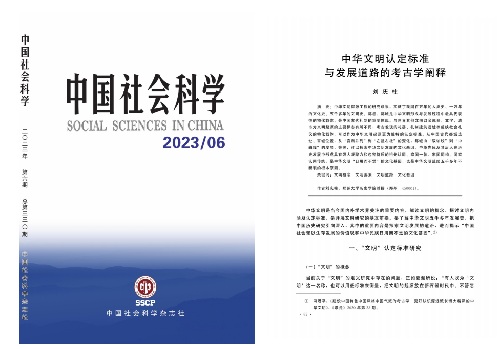 《中华文明认定标准与发展道路的考古学阐释》发表于《中国社会科学》2023年第6期