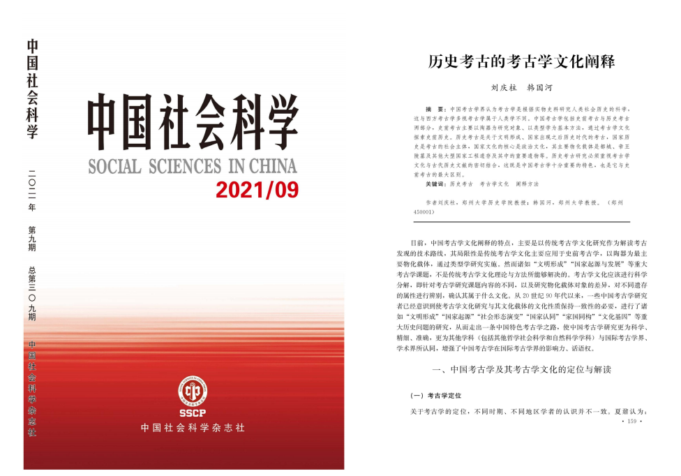 《历史考古的考古学文化阐释》发表于《中国社会科学》2021年第9期