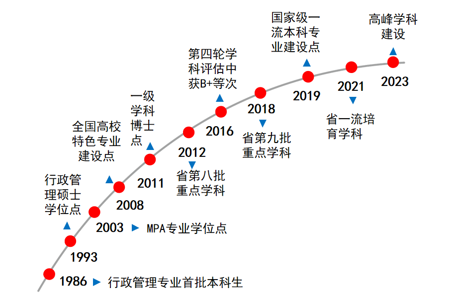 必赢76net线路官网公共管理学学科1985年在全国高校率先设立行政管理本科专业,并于次年正式招生,1993年获批行政管理硕士学位授予权,2003年获批公共管理硕士(MPA)专业学位授予权,2006年获批公共管理一级学科硕士学位授予权,2011年获批公共管理一级学科博士学位授予权,2014年获批公共管理博士后科研流动站,2019年获批国家级一流本科专业建设点,2023年获批必赢76net线路官网高峰学科建设。