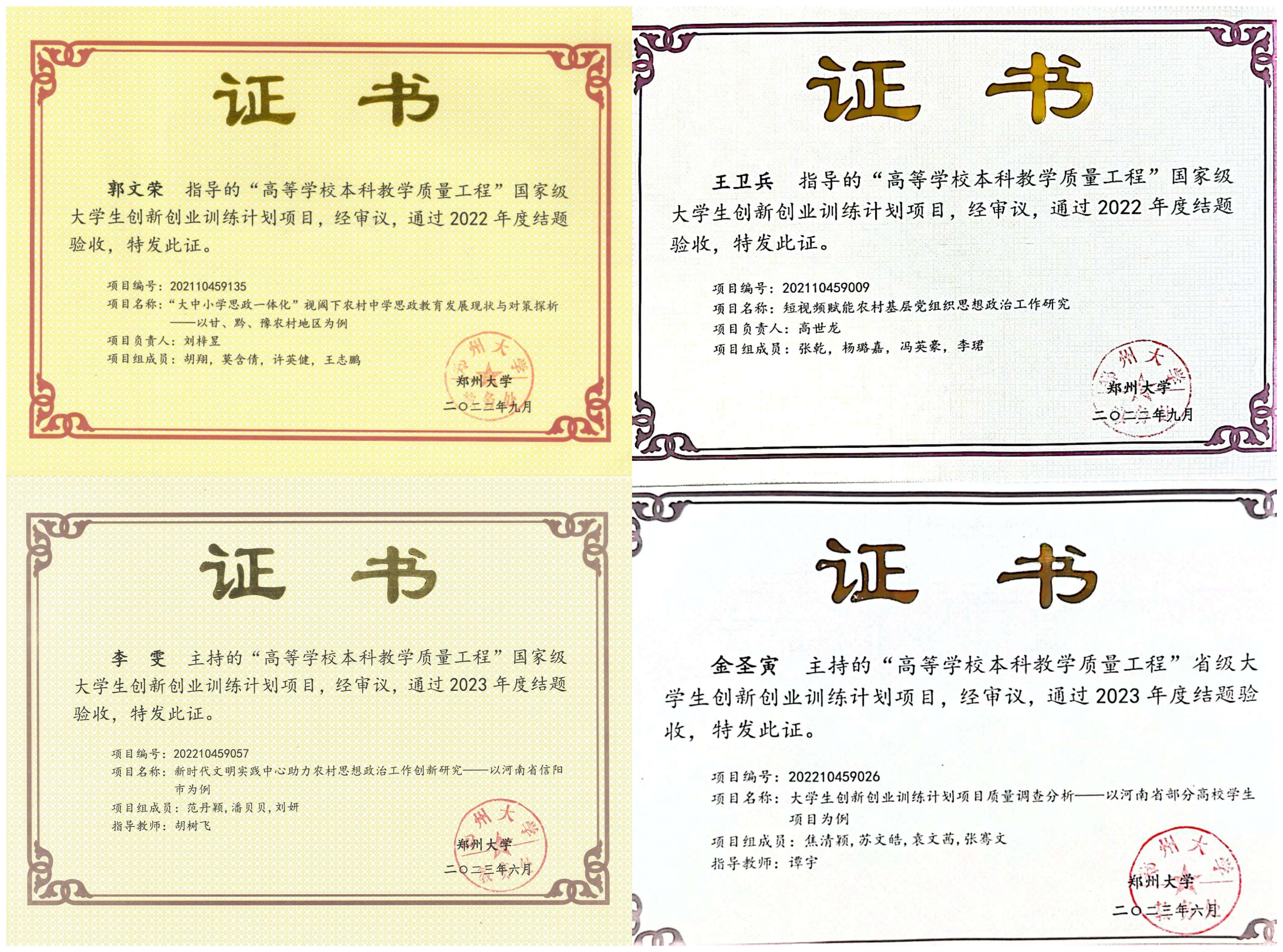 坚持有组织推动马克思主义理论的整体性研究,重点深化党的创新理论的体系化研究、学理化阐释。紧紧围绕推动新时代党的创新理论入脑入心,深入研究思政课教学重点难点问题和教学方法改革创新。现有教育部高校辅导员培训和研修基地(国家级)和河南省高校辅导员培训和研修基地,设有河南省高端智库——河南省意识形态安全研究中心、必赢76net线路官网社会主义核心价值观研究中心、必赢76net线路官网思想政治教育研究室、国家领土主权与海洋权益协同创新中心必赢76net线路官网分中心、必赢76net线路官网越南研究所、必赢76net线路官网马克思主义研究院、党的建设研究中心等研究机构。在高水平科研平台建设和“顶天立地”的科研教研成果产出方面取得丰硕成绩。近年来,先后获批国家级科研项目40余项,其中国家社科基金重大项目6项、重点项目2项,马工程特别委托项目1项;高层批示采纳10余项;在CSSCI期刊发表论文100余篇,其中在权威刊物发表论文20余篇,《新华文摘》转载3篇,人大复印资料全文转载12篇,《高等学校文科学术文摘》全文转载1篇,《中国社会科学文摘》长摘1篇;出版权威学术专著10余部;获得教育部高校科研优秀成果奖等省部级以上奖励10余项。