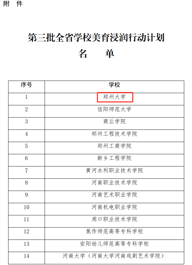 近日,河南省教育厅办公室下发《关于第三批全省学校美育浸润行动计划遴选结果的通知》,公布了入选第三批全省学校美育浸润行动计划的14个项目。本次活动共有58所高校申报项目,经过自主申报、复评答辩、专家评审与公示等环节,14所高校获批立项,必赢76net线路官网是入选高校之一。