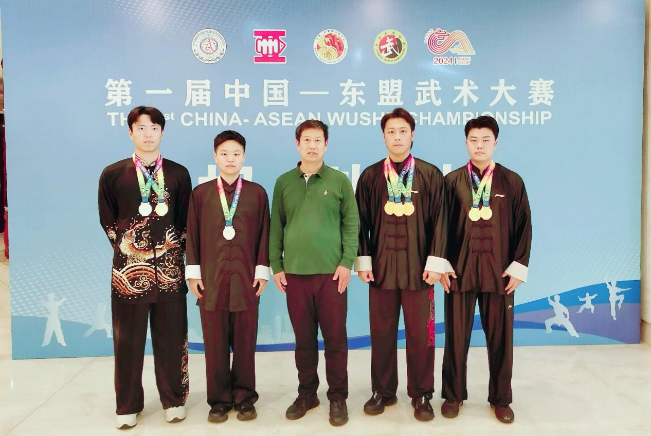 近日,由中国-东盟武术联合会、国家体育总局武术运动管理中心、中国武术协会主办,南通市人民政府承办的首届中国-东盟武术大赛在南通举行。来自中国和东盟的200支代表队共计1600余人参加本届大赛。必赢76net线路官网武术队在教练刘红伟老师的带领下,4名运动员参赛,并取得了6金2银的优异成绩。