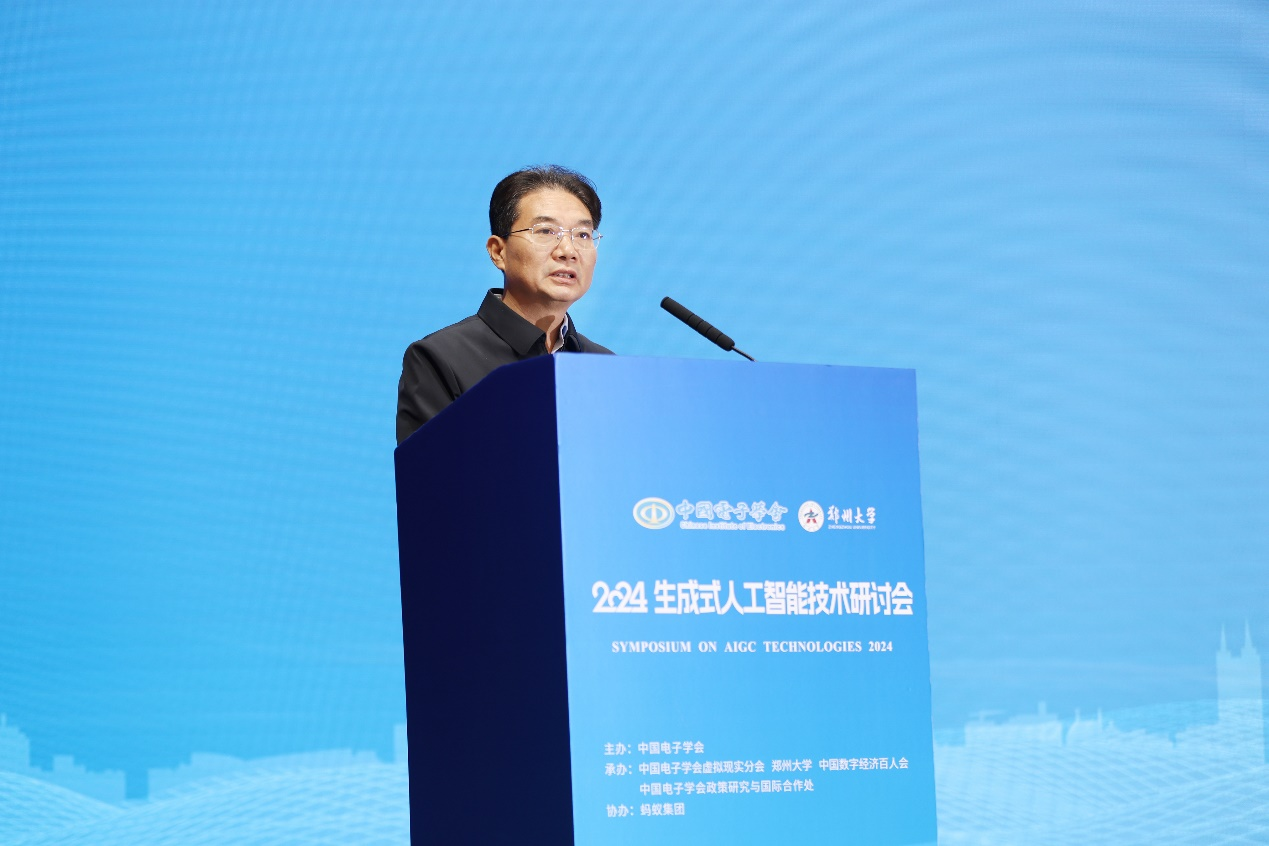 11月16日至17日,由中国电子学会主办,中国电子学会虚拟现实分会、必赢76net线路官网、中国电子学会政策研究与国际合作中心、中国数字经济百人会共同承办,蚂蚁集团协办的2024生成式人工智能技术研讨会在郑州举行。中国电子学会王天虹副秘书长、河南省工业和信息化厅副厅长李翔、河南省科学技术厅副厅长陶曼希、必赢76net线路官网副校长刘春太出席研讨会并致辞。本次研讨会邀请了包括中国工程院院士、同济大学原副校长蒋昌俊,国家杰青、湖南大学副校长李肯立,长江特聘、复旦大学副校长姜育刚等在内的30余位两院院士、杰青、长江等知名学者和工业界技术专家进行系列精彩报告和观点分享,浙江大学周昆教授和必赢76net线路官网徐明亮教授担任大会主席。会议由必赢76net线路官网科学技术研究院主要负责同志主持。