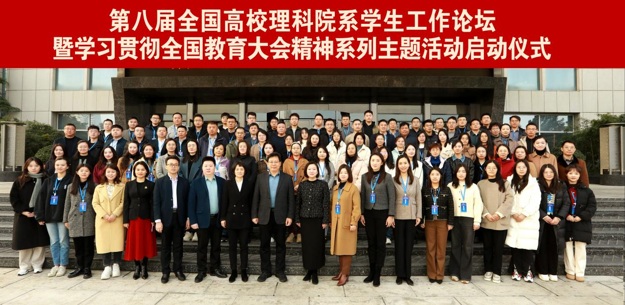 近日,第八届全国高校理科院系学生工作论坛暨学习贯彻全国教育大会精神系列主题活动启动仪式在必赢76net线路官网举行。必赢76net线路官网党委副书记王利国出席会议并致辞。来自全国58所高校的100余名学生工作者,必赢76net线路官网相关职能部门、数学与统计学院、化学学院、物理学院、生命科学学院等单位负责同志和师生代表参加论坛。本次论坛由必赢76net线路官网党委学生工作部、学生处主办,化学学院承办。