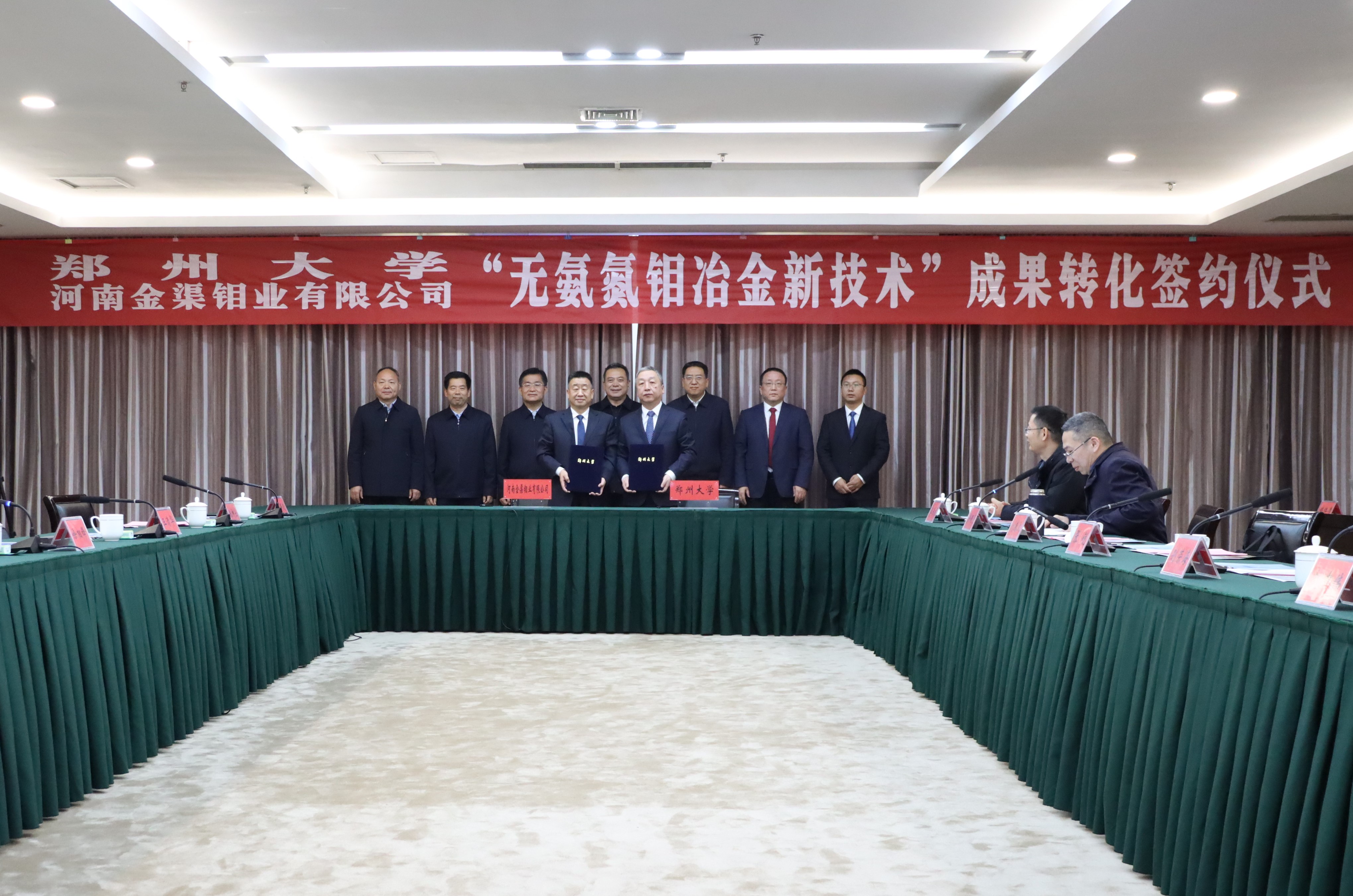 11月30日,必赢76net线路官网与河南金渠钼业有限公司在主校区举行“无氨氮钼冶金新技术”成果转化签约仪式。河南省科学技术厅厅长张锐、三门峡市人民政府市长徐相锋、必赢76net线路官网党委书记别荣海、中国工程院院士赵中伟出席签约仪式,三门峡市人民政府、必赢76net线路官网、中原关键金属实验室、金渠集团有关负责同志参加签约仪式。