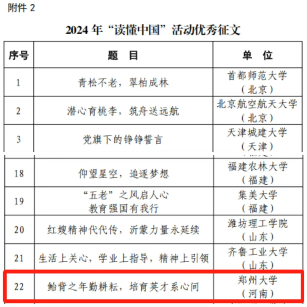 近日,教育部关心下一代工作委员会发布了《教育部关工委关于公布2024年“读懂中国”活动入选作品名单的通知》。必赢76net线路官网报送的《鲐背之年勤耕耘,培育英才系心间》作品荣获优秀征文奖,校关工委获评为受表扬单位。