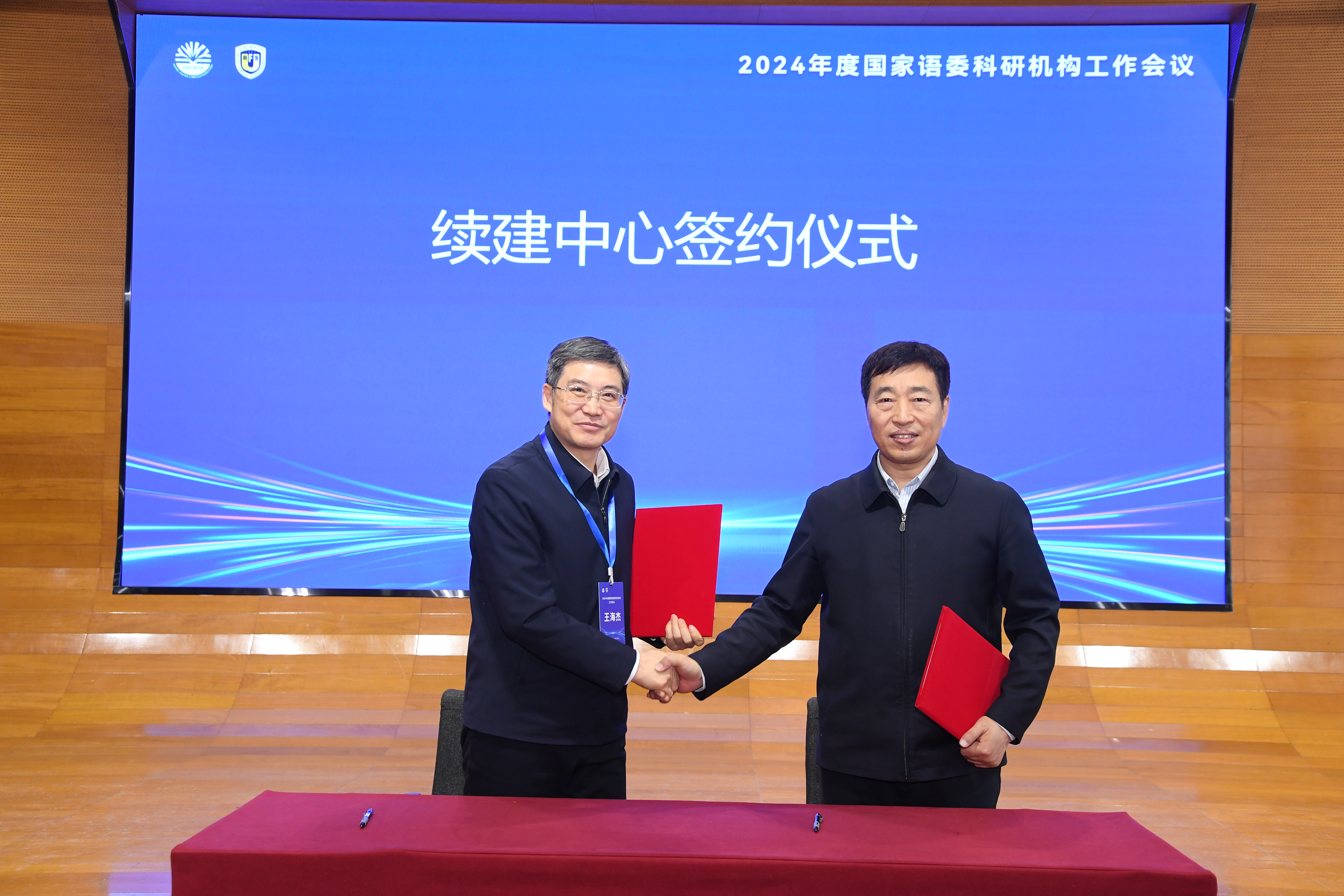 近日,2024年度国家语委科研机构工作会议在北京举行,会上教育部语言文字信息管理司与必赢76net线路官网举办了续建国家语委科研基地“中华汉字文明研究中心”(原名“汉字文明传承传播与教育研究中心”)的签约仪式。教育部语言文字信息管理司司长刘培俊,校党委常委、副校长王海杰代表共建双方签约,中华汉字文明研究中心相关负责人等参加签约仪式。