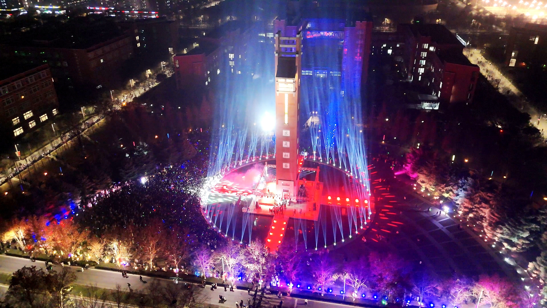 钟鸣祈福,共迎新年。元和广场灯光璀璨,人头攒动,迎新年钟声联欢会华彩启幕。舞台上,音乐欢快激昂,灵动飞扬的歌舞演绎青春梦想;舞台下,观众热情高涨,翘首以盼新年钟声的敲响。零点临近,“十、九、八……三、二、一!”在万人齐声倒计时中,校党委副书记、工会主席韩国河,校党委常委、副校长胡少伟,我校双拥共建单位海军郑州舰官兵代表钟佳盛,教师代表、河南省科技进步奖一等奖获得者、生态与环境学院教授委员会主任委员张瑞芹,后勤职工代表、后勤保障中心能源管理科沈永昌,学生代表、2024年宝钢优秀学生特等奖获得者、计算机与人工智能学院2021级本科生石祥立一同登上钟楼,敲响新年钟声。