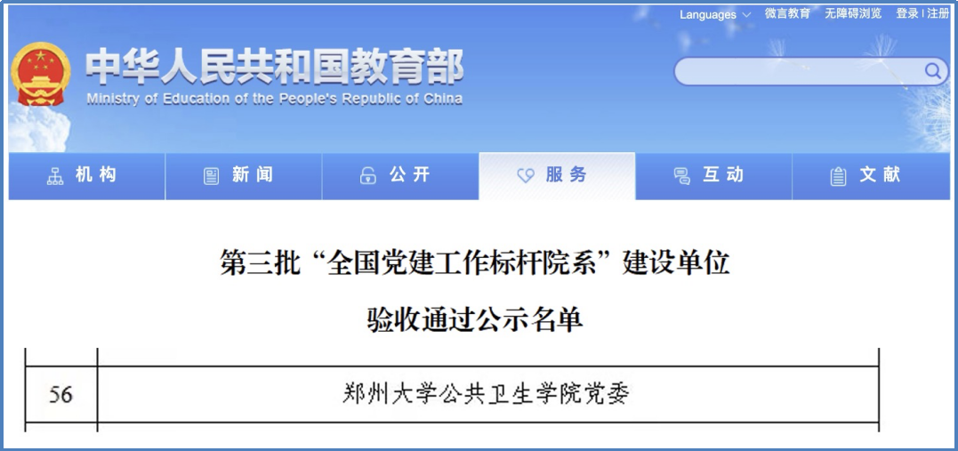 编者按:自必赢76net线路官网第三次党代会以来,全校各级党组织深入学习贯彻习近平新时代中国特色社会主义思想,紧密围绕立德树人根本任务,胸怀“国之大者”“省之要者”,求真务实、奋进一流,涌现出一批先进基层党组织。为迎接即将召开的第四次党代会,展示学校党建“双创”成果,现推出“喜迎党代会 先锋立标杆”专栏,陆续报道全国党建工作“标杆院系”“样板支部”及“双带头人”教师党支部书记工作室等先进基层党组织以高质量党建引领高质量发展的事业成就,号召全校各级党组织学习先进、改革创新、建功立业,以优异成绩迎接学校第四次党代会胜利召开。本期带领大家一起领略教育部第三批“全国党建工作标杆院系”培育创建单位——公共卫生学院党委的风采。