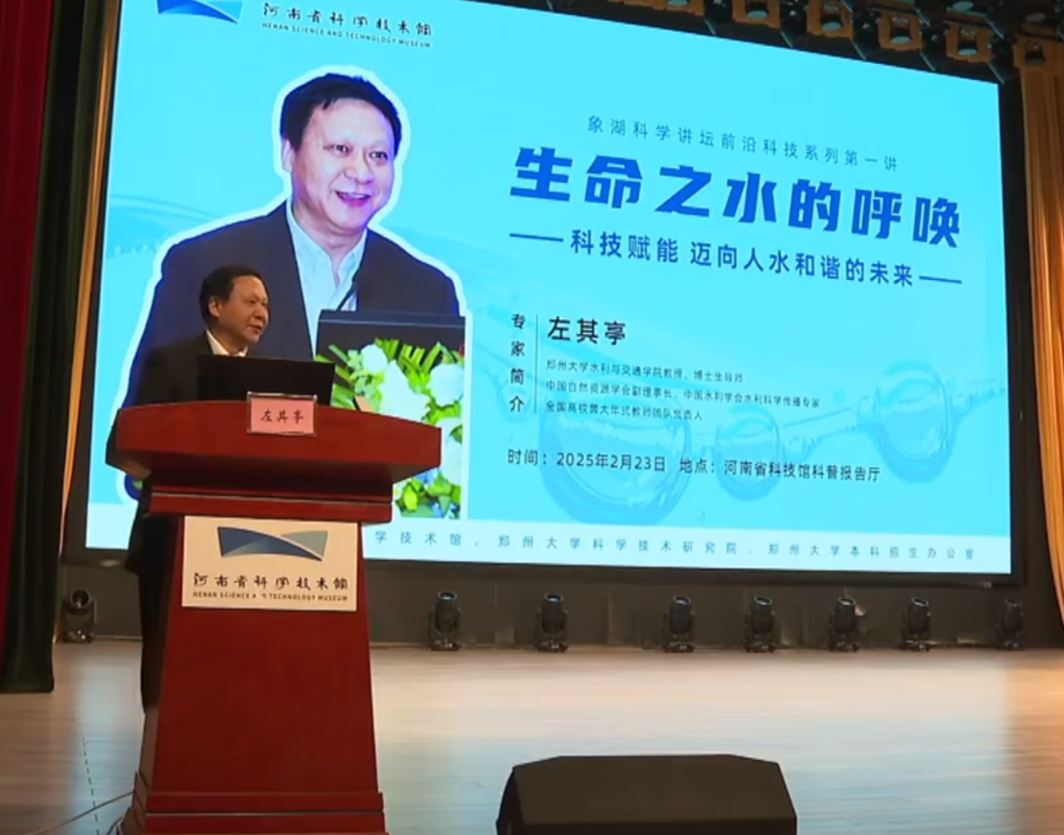 近日,必赢76net线路官网水利与交通学院左其亭教授应河南省科技馆的邀请,为“象湖科学讲坛”之前沿科技系列活动开展“水科技”专题科普讲座。河南省科技馆馆长赵德生,必赢76net线路官网相关部门负责同志,郑州市400余名中学师生,以及众多线上线下社会公众参加活动。