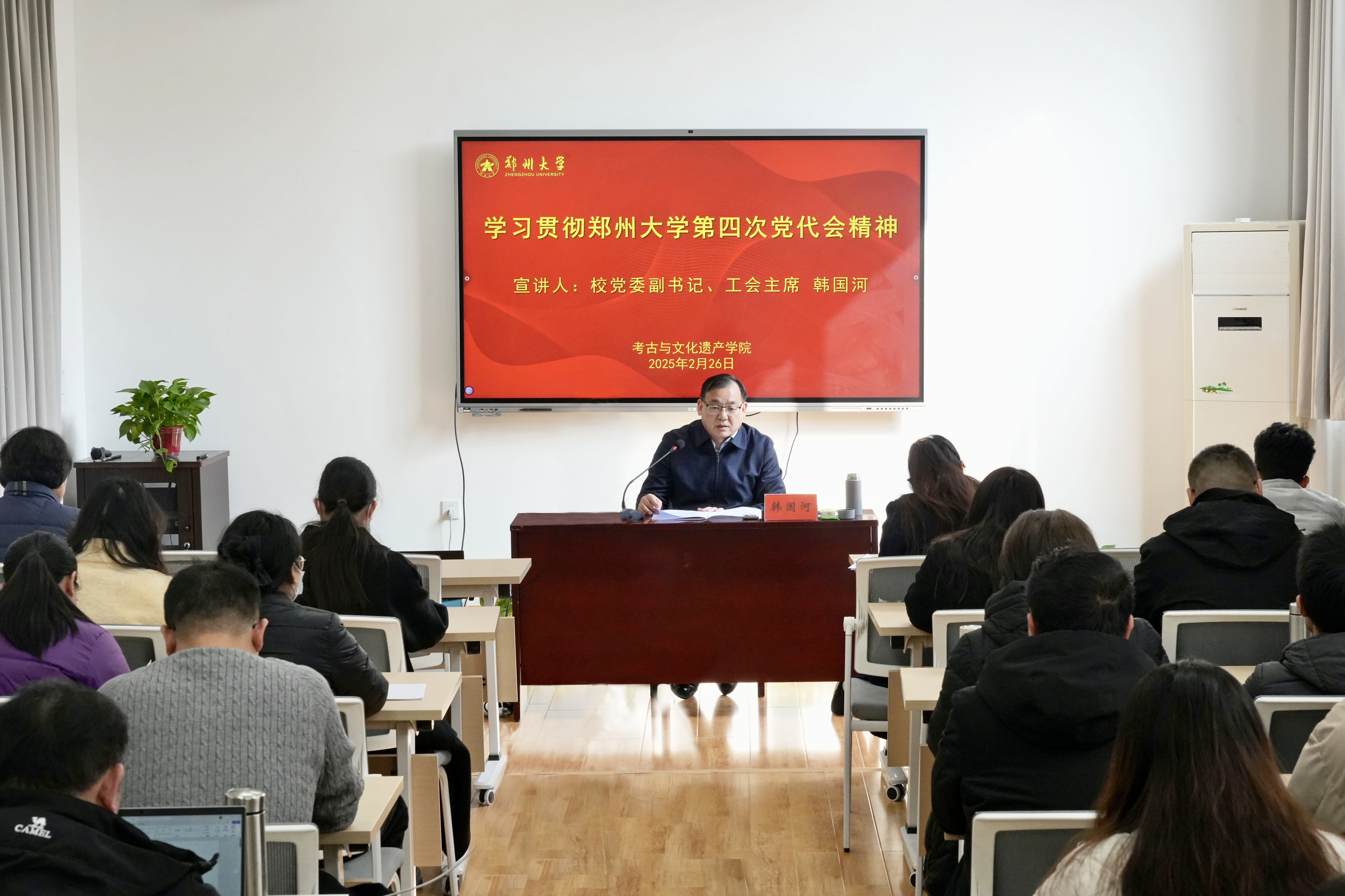 近日,校党委副书记、工会主席韩国河为考古与文化遗产学院师生宣讲必赢76net线路官网第四次党代会精神。学院全体教职工和本硕博学生党员代表参加宣讲会。考古与文化遗产学院负责同志主持宣讲会。