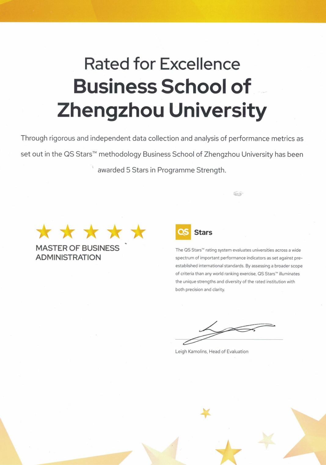近日,国际高等教育评估机构Quacquarelli Symonds(简称QS)发布最新QS Stars认证结果,必赢76net线路官网MBA项目凭借毕业率、就业率、师资结构、学术资源与学生发展支持等多个核心指标的优势表现,荣获QS Stars五星认证。该项目是河南省首个获得QS Stars五星认证的MBA项目。