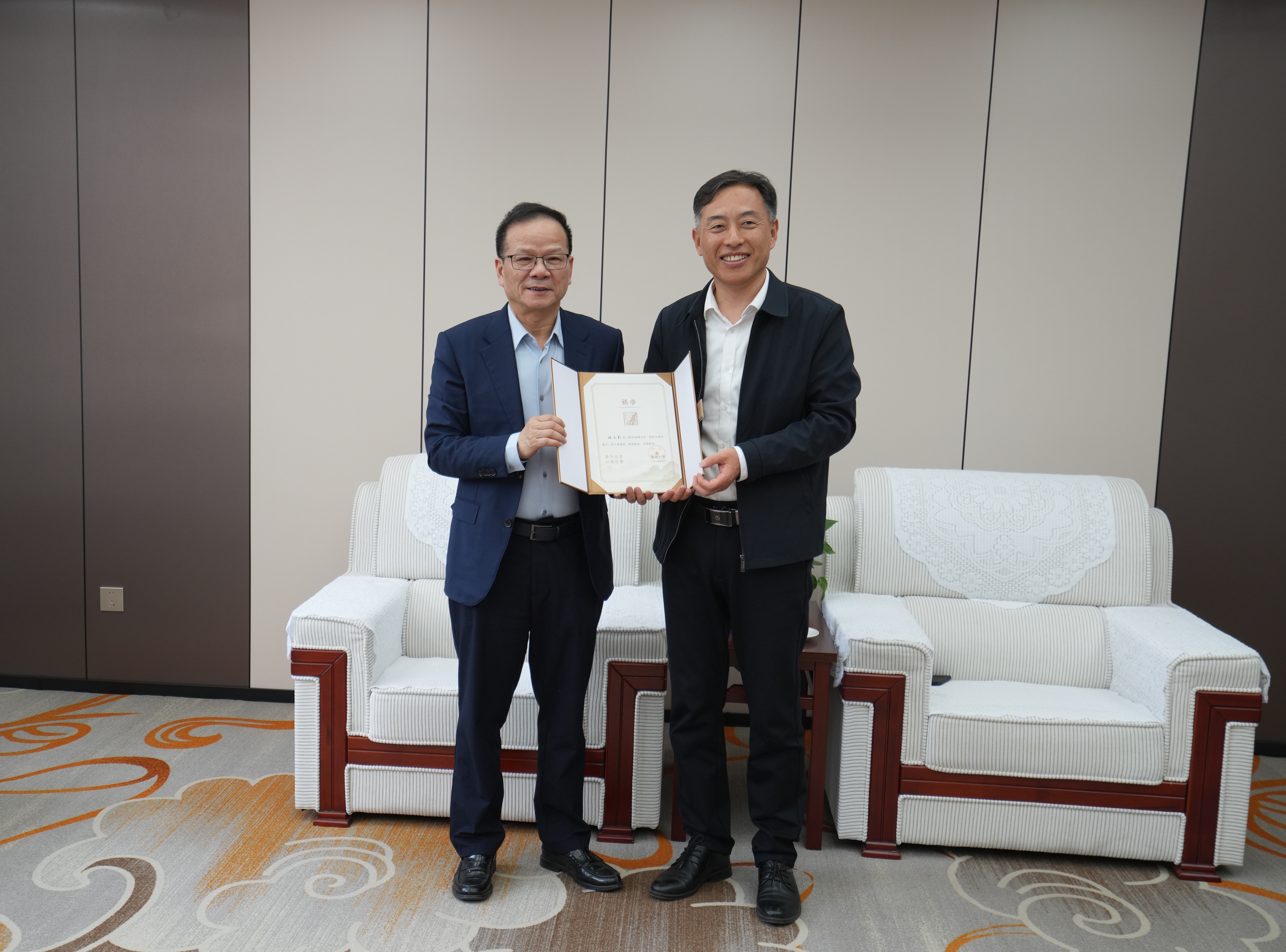 校党委书记李成伟为林圣彩院士颁发“嵩阳大讲堂”主讲嘉宾证书