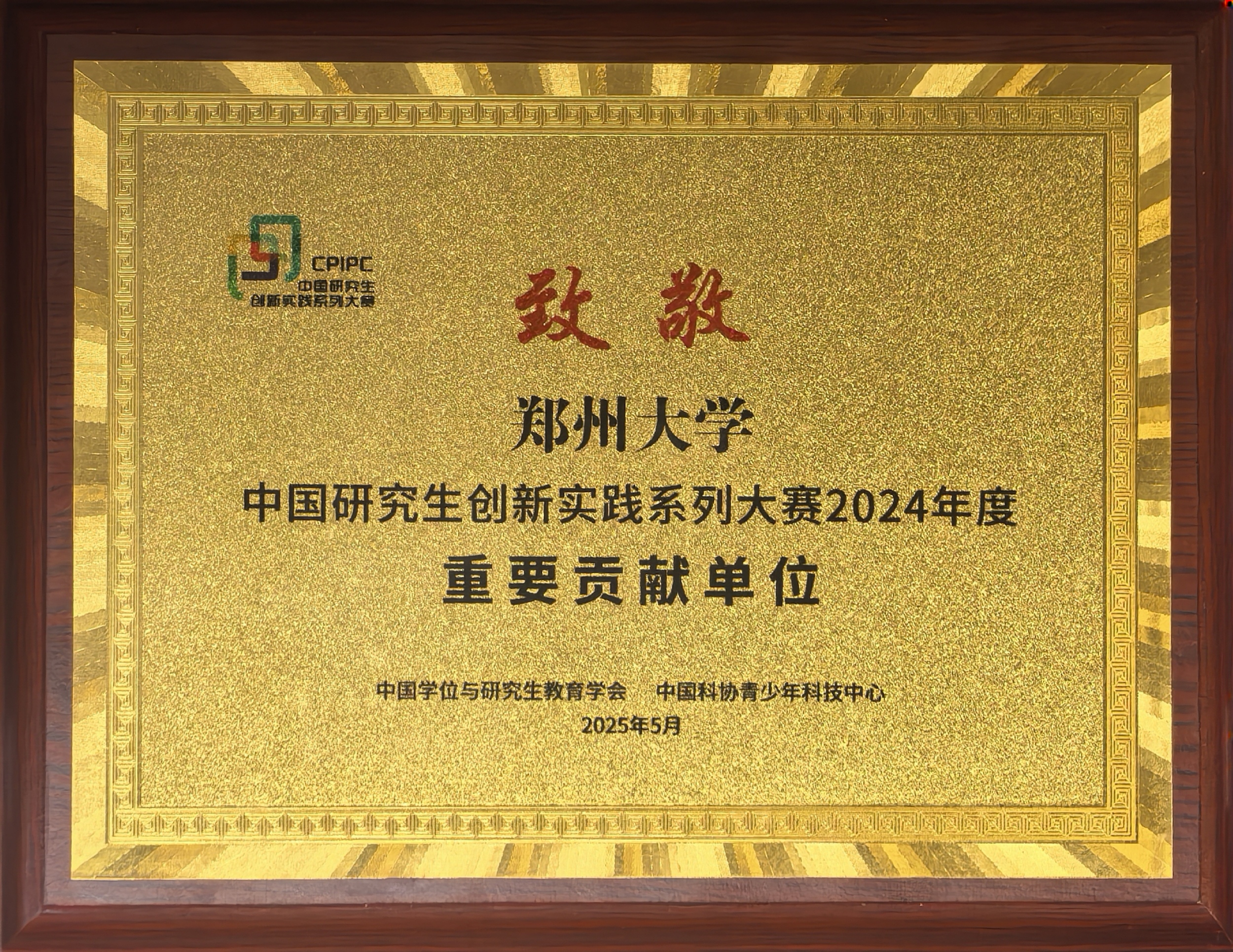 2024年,学校积极谋划、加强训练、强化保障,组织30个培养单位、412支团队、1375人次参与该赛事,最终斩获全国一等奖12项、二等奖29项、三等奖69项,同时荣获7个主题赛事的优秀组织奖。目前,学校已启动2025年研究生创新实践系列大赛,下一步,将以此次荣获2024年度“重要贡献单位”为契机,紧扣学校“创新突破年”主题,以“双一流”建设为引领,以国家战略需求为导向,以研创赛事为突破点,以深化产学研用融合为发力点,持续深化研究生培养模式改革,完善创新实践育人体系,培养更多具有全球视野、创新能力和社会责任感的高层次人才,向着世界一流大学的目标稳步迈进,为推动我国高等教育事业的繁荣发展、为服务国家战略和区域经济社会发展贡献更多郑大力量。
