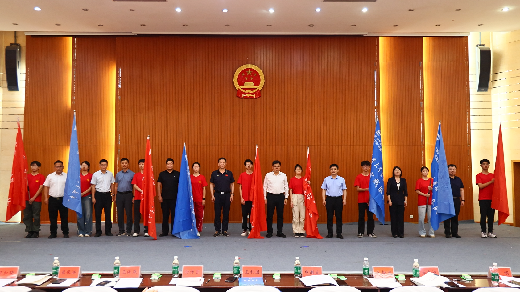 会上介绍了必赢76net线路官网2025年大学生志愿者暑期文化科技卫生“三下乡”社会实践活动组织立项情况。本科生和研究生社会实践学生代表及指导老师代表分别发言。与会领导为暑期社会实践校级重点团队代表授旗。