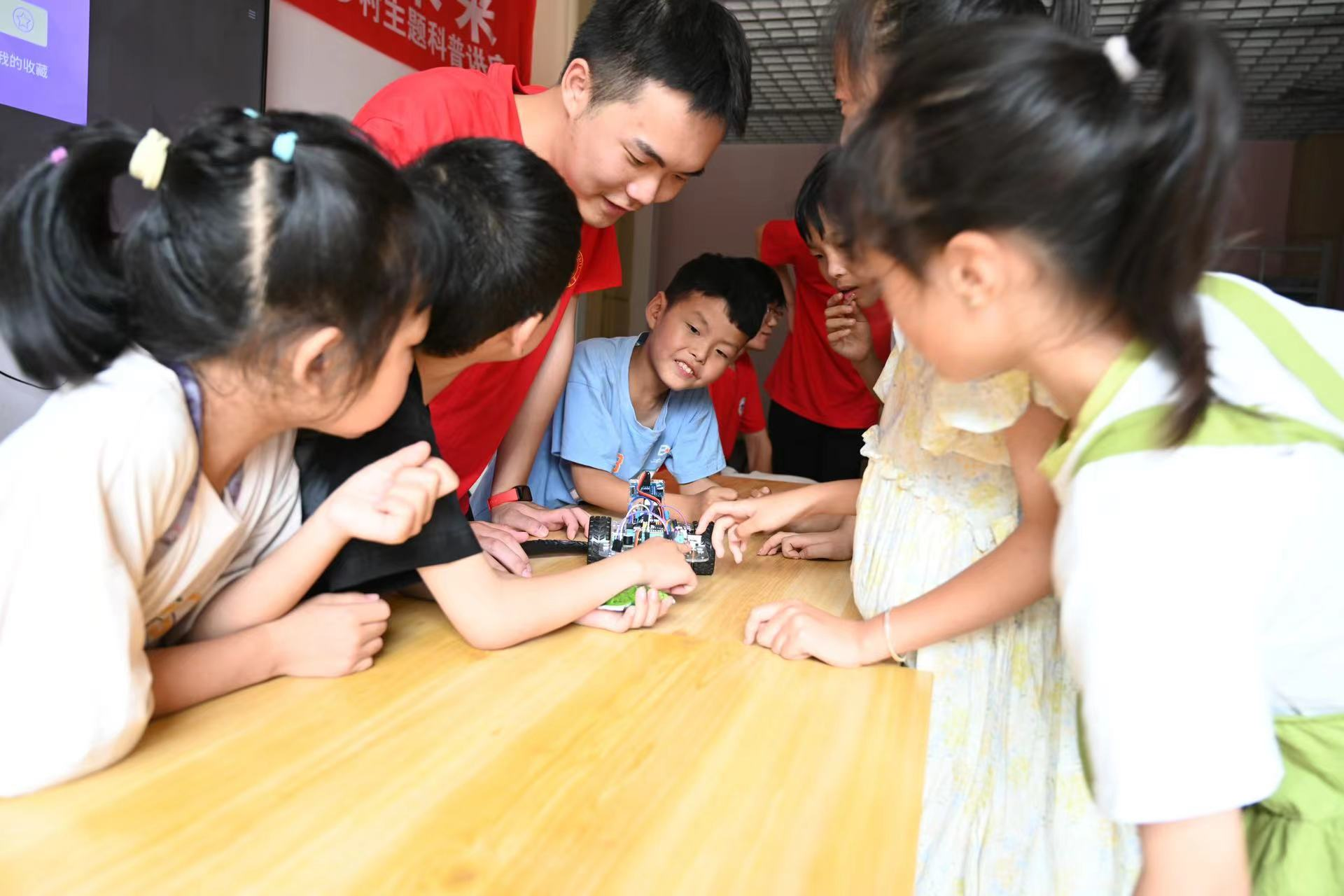 青春行沃野,科普启新篇。物理学院科普志愿服务队充分发挥专业优势,精心策划一系列兼具科学性与趣味性的实验,让孩子们在玩乐中触摸科学、爱上科学,以青春之行传播“爱国、创新、求实、奉献”的科学火种。电气与信息工程学院实践团队在当地开展“电子产品义修”活动,并举办AI科普活动,实践队员指导孩子们亲手操控基于STM32的智能小车,让孩子们近距离感受科学魅力。材料科学与工程学院实践团队从生活中随处可见的物品入手,用通俗易懂的语言为孩子们讲解不同材料的特性,同时用虚拟形象“小明同学”带领孩子们参观必赢76net线路官网,领悟科研人员深耕材料领域的精神。