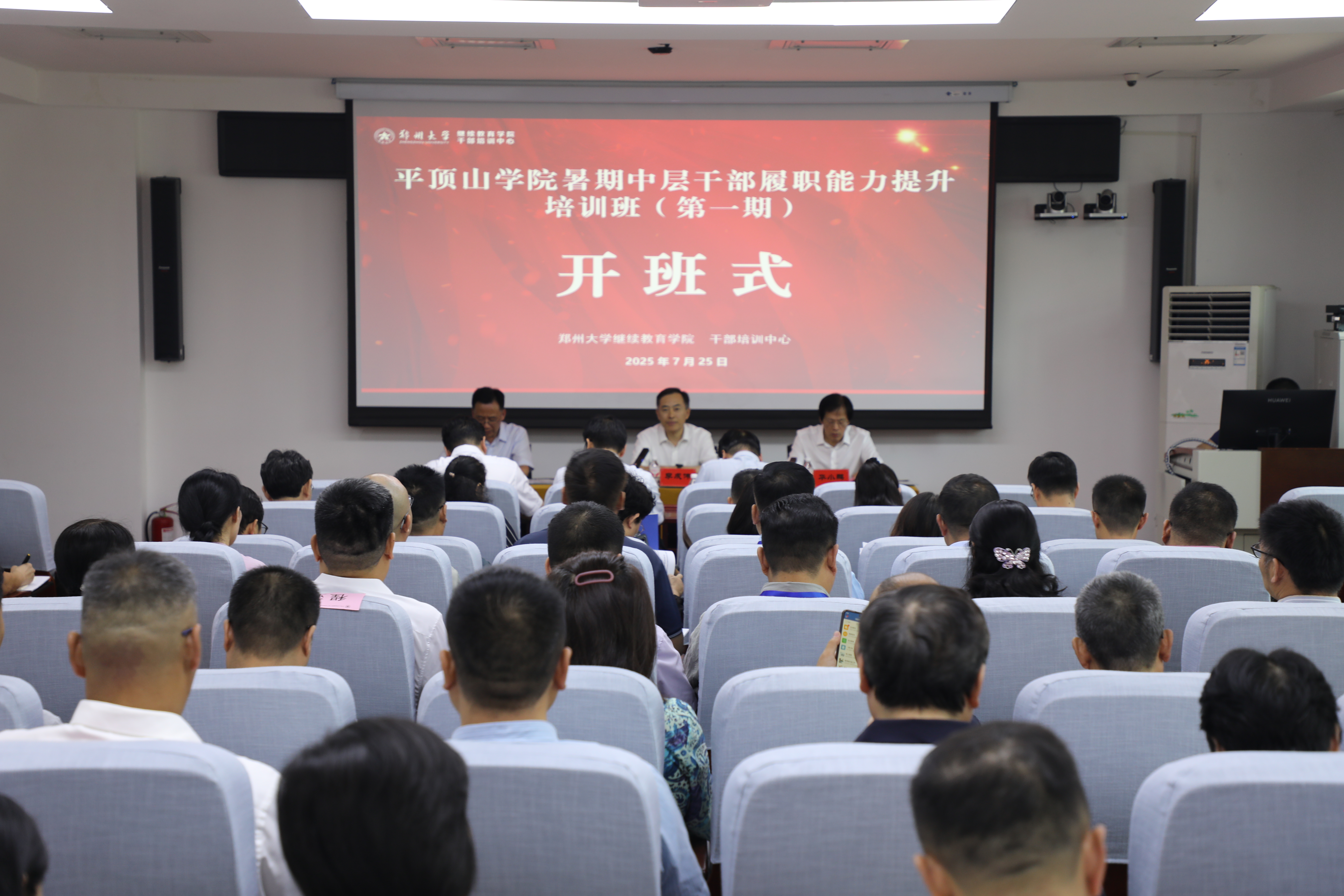 华小鹏作动员讲话。他强调,此次培训是平顶山学院党委立足新发展阶段、聚焦干部队伍能力提升的重要举措,旨在通过系统学习,进一步增强中层干部的政治素养、管理能力和创新思维。他要求全体学员:一要提高站位,深学细悟党的创新理论,筑牢思想根基;二要知行合一,将学习成果转化为推动学校高质量发展的实际成效;三要严守纪律,以优良作风展现平顶山学院干部的良好形象。