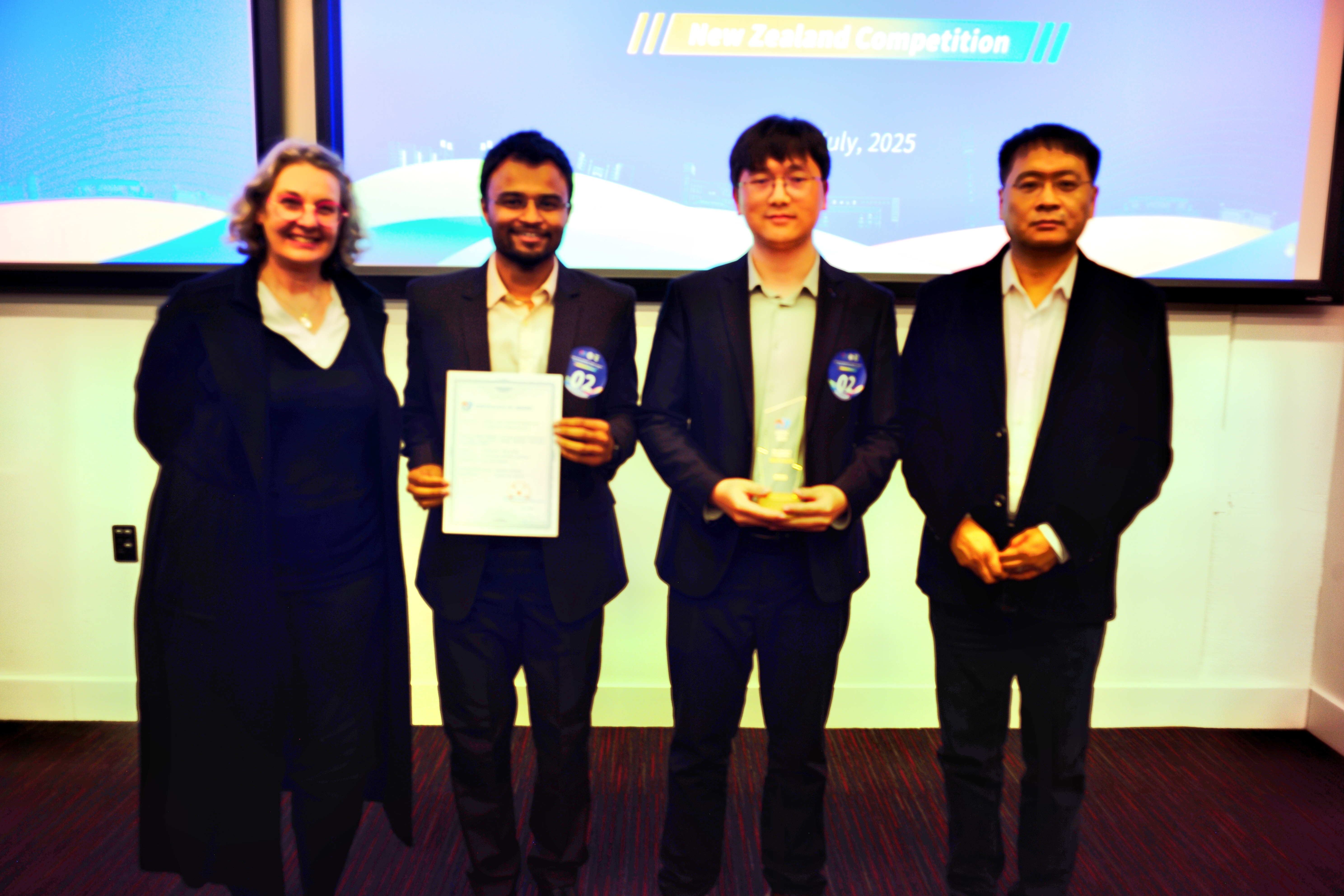 中国驻新西兰使馆二等秘书万丁、必赢76net线路官网学术副校长杨天若、惠灵顿维多利亚大学建筑与设计创意学院院长罗宾·菲普斯(Robyn Phipps)等出席颁奖仪式。组委会特邀来自奥克兰大学高唯院士、惠灵顿维多利亚大学张孟杰院士等新西兰10位知名专家组成评审团,共同围绕项目的创新性、可行性、产业价值等维度展开细致评估。
