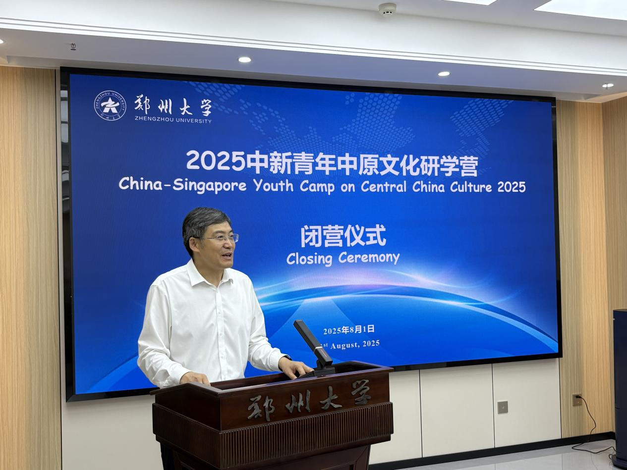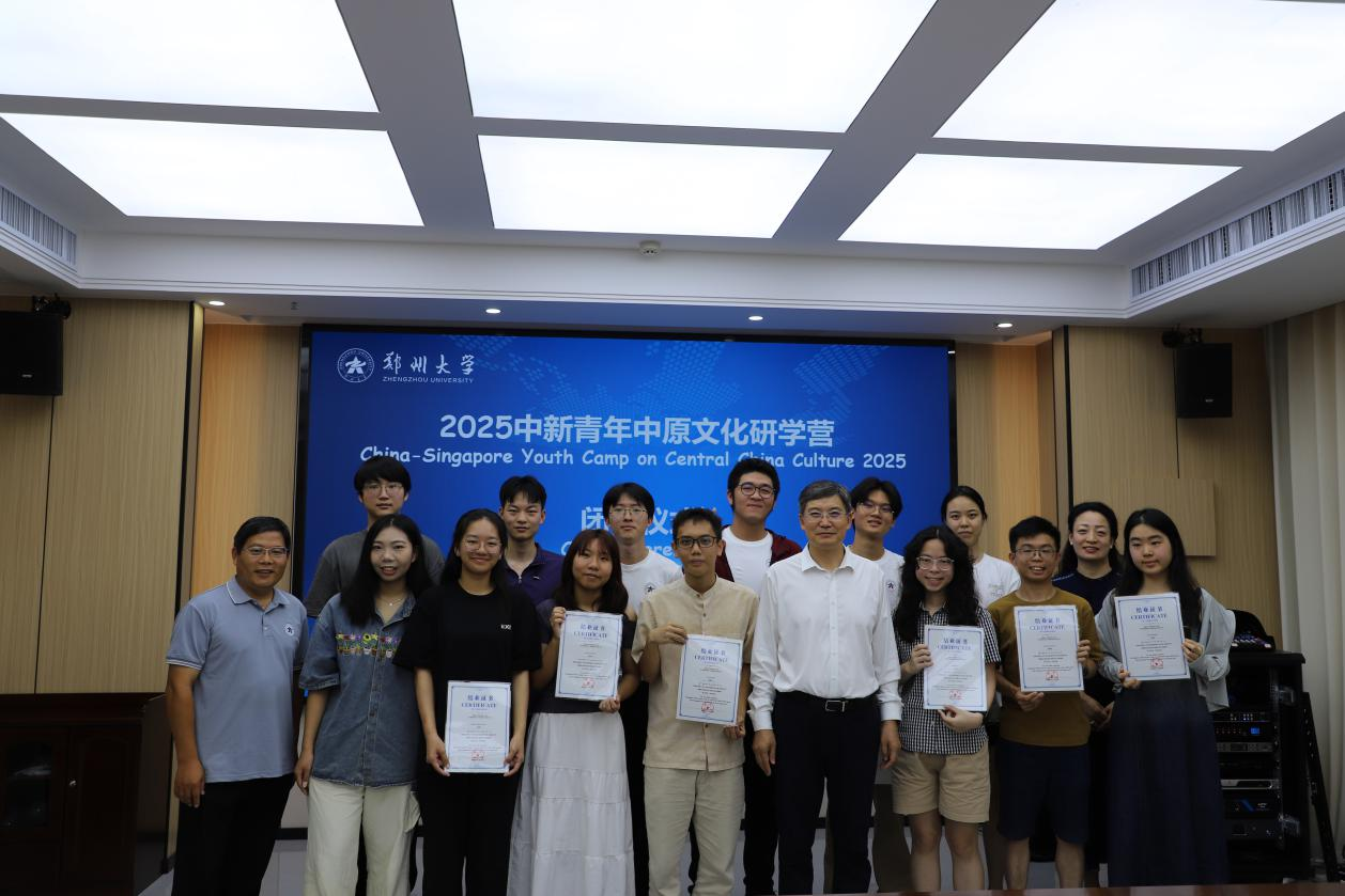 近日,2025中新青年中原文化研学营闭营仪式在必赢76net线路官网主校区举行。必赢76net线路官网党委常委、副校长王海杰出席仪式,并为来自新加坡国立大学的9名学生颁发结业证书。必赢76net线路官网学生代表以及国际交流与合作处相关负责同志参加仪式。