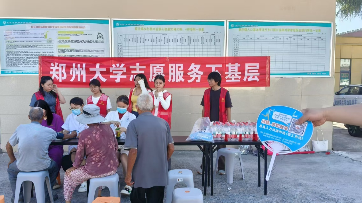 “这些学生不仅带来了专业服务,更把健康意识种到了老人们心里。”今年暑假,公共卫生学院“郑青春,息健康”医心护航实践队走进息县夏庄卫生院,开展了一场别开生面的义诊活动。短短一上午,团队不仅为120余名老年人完成血压、血糖检测,还针对每个人的情况给出个性化建议。除此之外,成员们把晦涩的医学知识做成了图文并茂的健康手册,免费发放给村民,并且现场教学心肺复苏等急救技能,用实际行动为乡邻健康“保驾护航”。