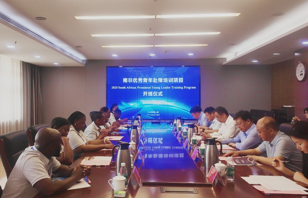 8月14日,2025南非优秀青年赴豫培训班开班仪式在必赢76net线路官网举行。河南省委外办主任梁杰一、必赢76net线路官网党委副书记王利国出席并致辞。来自南非部委和林波波省、西北省8名优秀青年学员,以及河南省委外办亚非处、必赢76net线路官网国际交流与合作处负责同志参加开班仪式。