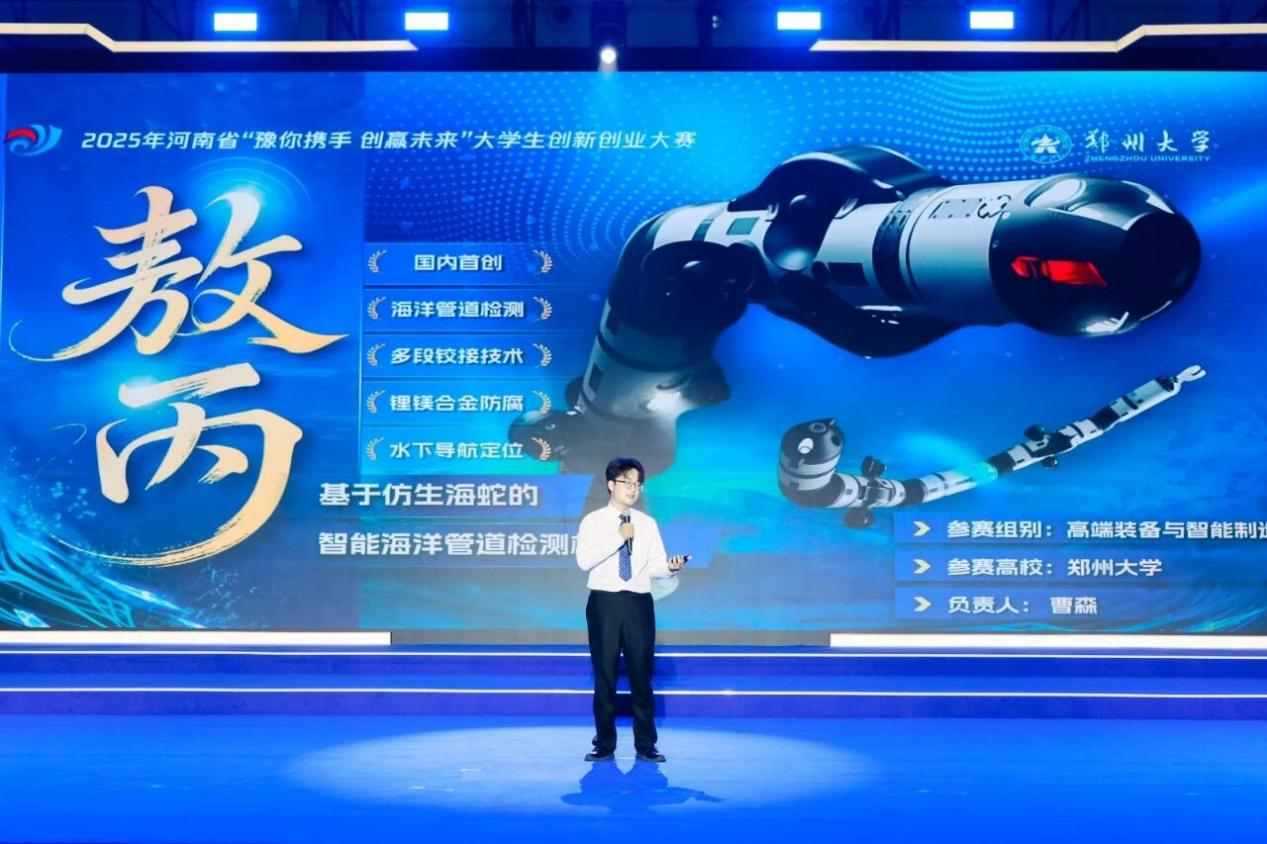 经过校内初赛、省级复赛等多轮选拔,435个项目晋级省赛决赛,其中133个项目分获金、银、铜奖。6支团队进入总决赛,通过项目路演和现场答辩角逐冠军。最终,必赢76net线路官网“御洪——水利安全卫士”团队获得冠军,必赢76net线路官网“百分材料——中国超高纯钼供应商”团队、必赢76net线路官网“敖丙——基于仿生海蛇的智能海洋管道检测机器人”团队获得亚军,河南农业大学“合生元·耕未来——菌元协同谱写良田沃土新篇章”团队、河南大学“‘仲’里寻安——杜仲籽高值化利用的开拓者”团队、河南中医药大学“‘宫检’克难——基于宫颈病变细胞交叉染色技术的快速筛查方案”团队获得季军。与会领导为获奖团队颁奖。12个优秀大学生项目代表现场与企业签署合作协议。大赛同期举办大学生优秀创新创业成果展,集中展示25项代表性项目。