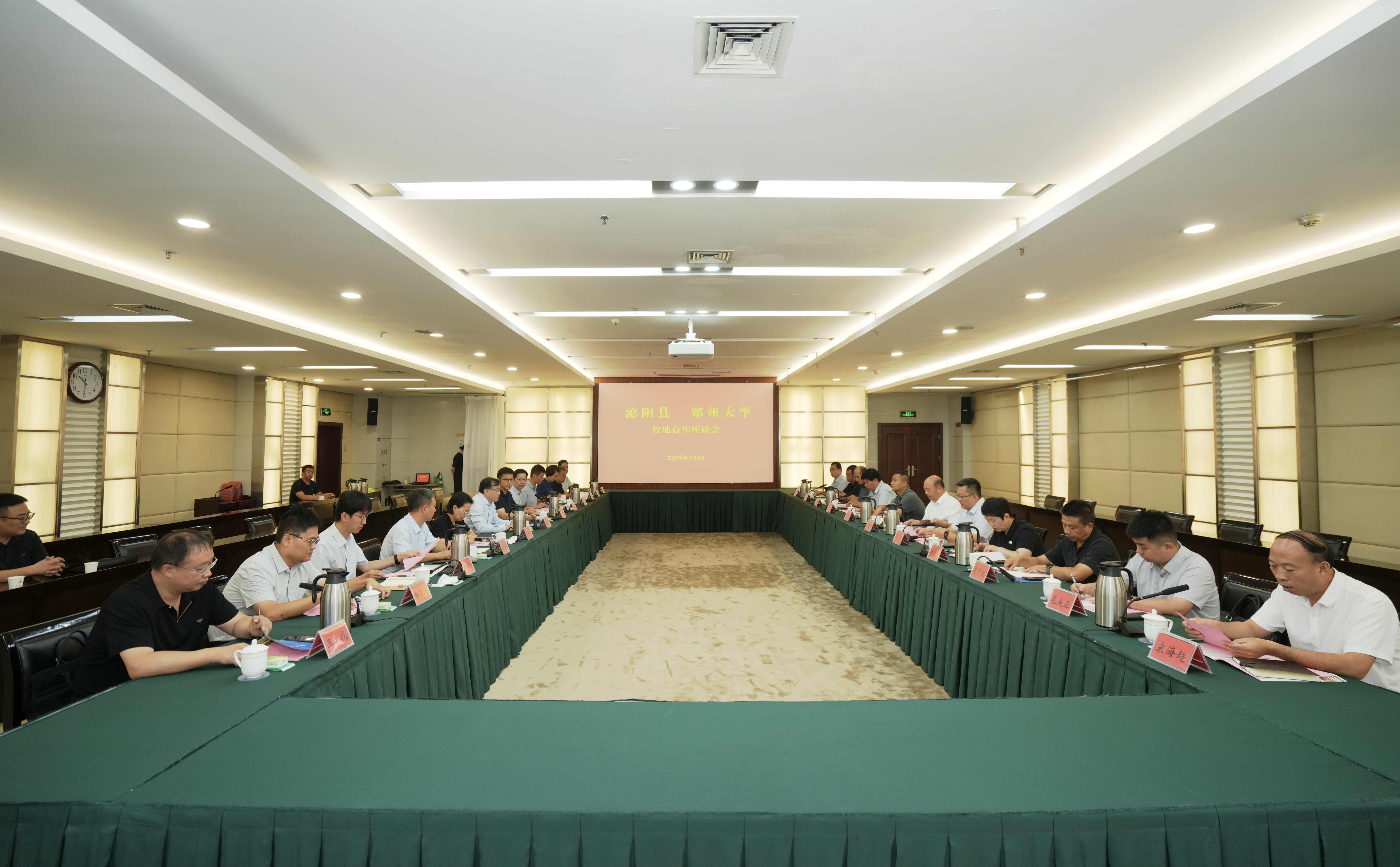 8月29日,泌阳县委书记朱东升率队来我校调研交流,校党委书记李成伟会见朱东升一行。校党委副书记、工会主席韩国河,校党委常委、组织部部长陈继超参加调研座谈。双方围绕深化校地合作、推动科技成果转化、助力乡村振兴等事宜进行深入交流。
