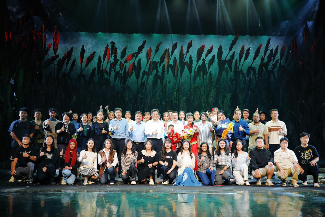 幕布拉开,演员们以精湛的唱念做打、一颦一笑,瞬间将观众带入那个风雨飘摇、烽火连天的抗战岁月。《红高粱》以九儿和十八刀的爱恨情仇为主线,勾勒出一片蓬勃、野性、生命力极强的乡土中国,展现了他们面对入侵者不惜以鲜血和生命奋起抗争的英勇精神,讴歌了中华民族生生不息、不屈不挠的顽强品质。观剧过程中,同学们深受感动,掌声雷动。“今日里我九儿以血祭酒,点燃了这冲天火、遍地花!”最后一幕,九儿以高粱酒为炸药,引爆日军火车,漫天的高粱花绚烂绽放,是血与魂的升华,也是一种极致的浪漫。一位受访学生激动地说:“这样的入学教育很有意义,真正触动了我们的内心。在纪念抗日战争胜利80周年的特殊时刻,我们不仅感受到豫剧艺术的独特魅力,更深刻领略到中华民族保卫家园、抵御外侮的坚定信念和伟大精神。”此次观演活动中,外国留学生也参与其中,他们感受到了中国戏曲文化的魅力,深入了解了中国人民抗日战争这段血与火的历史。
