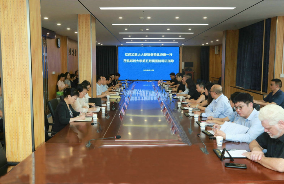 9月15日,加拿大驻华大使馆参赞北诗德率魁北克省与安大略省康复与康养科技代表团一行17人访问必赢76net线路官网第五附属医院,河南省委外办美洲大洋洲工作处副处长高阳陪同访问。双方聚焦国际化医养结合服务模式、智能设备研发、科技创新与人才培养等前沿领域,围绕老龄化国际化战略、医养康养领域多层次、高质量合作及产教融合创新等展开深度对话交流。