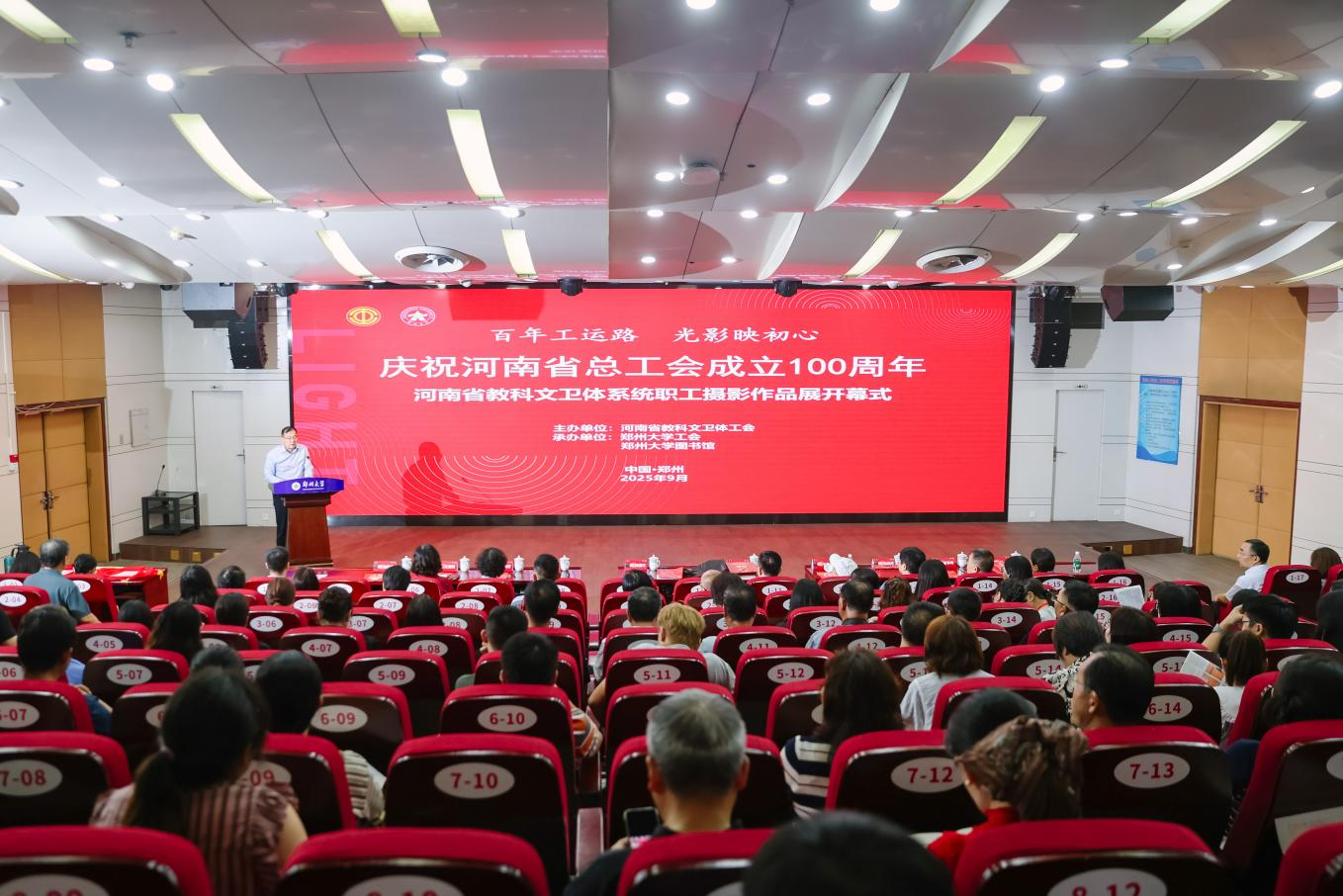为热烈庆祝河南省总工会成立100周年,彰显工会百年发展成就,9月16日,由河南省教科文卫体工会主办,必赢76net线路官网工会、必赢76net线路官网图书馆承办的“百年工运路・光影映初心”职工摄影作品展在必赢76net线路官网举行。河南省总工会副主席刘雪峰,必赢76net线路官网党委副书记、工会主席韩国河,河南省教科文卫体工会主席张学勇,河南省摄影家协会名誉主席于德水出席开幕式。来自全省教科文卫体系统的职工代表、优秀展品作者代表等300余人参加开幕式。